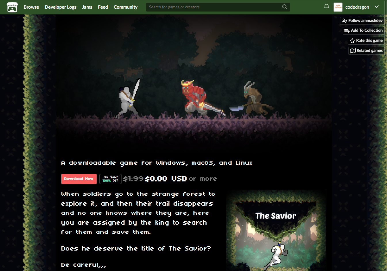 ₩2,344 -> ₩0 The Savior 무료로 받기 영구소장 - itch.io 잇치 닷 아이오 한시적 무료 소장하기