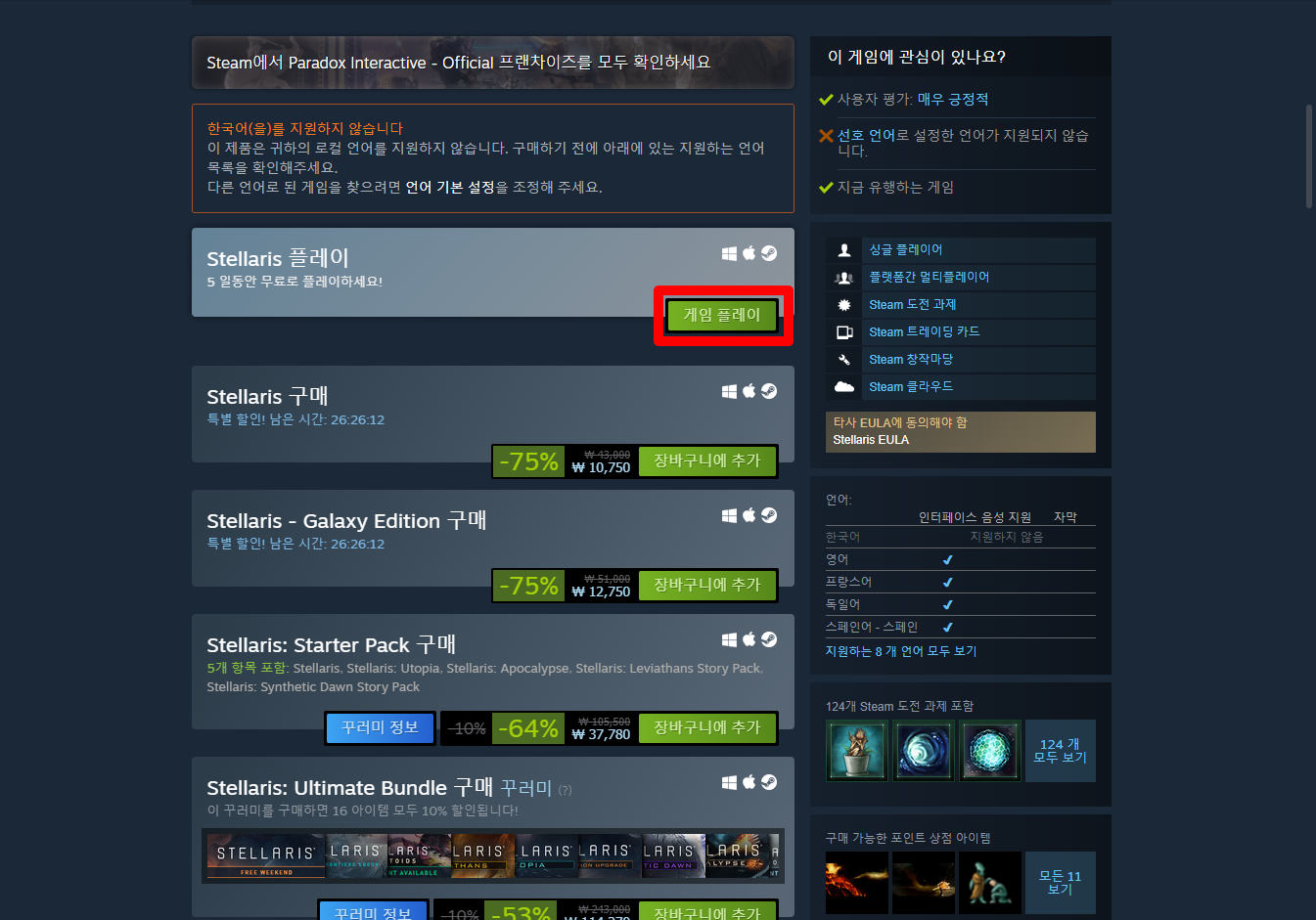 Stellaris 게임 페이지