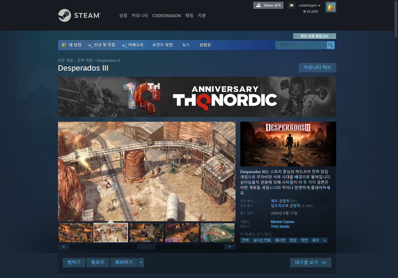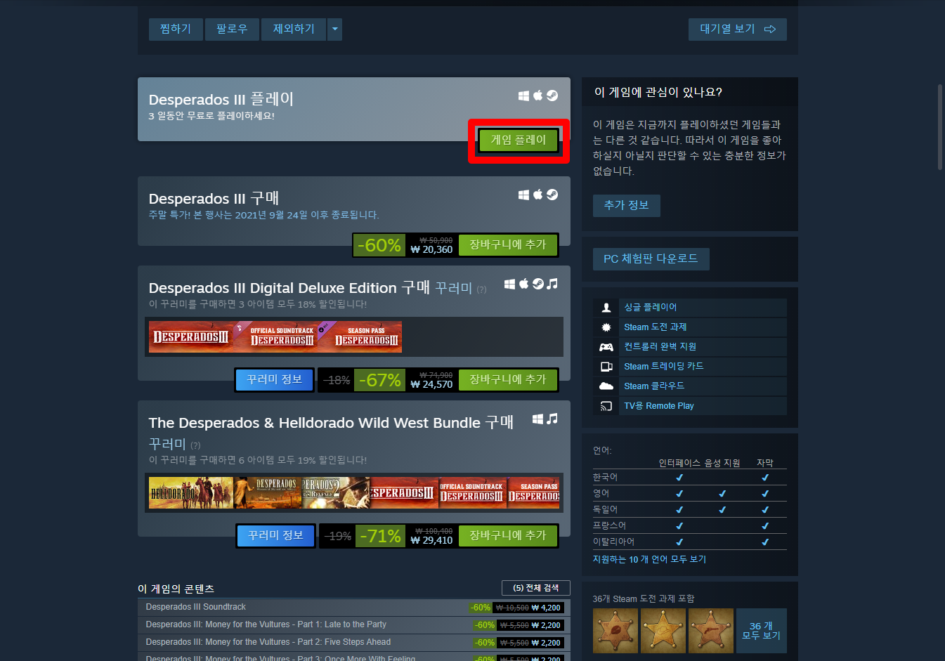 금주 게임은 "전략 잠임 액션" 게임인 "데스페라도스 3" 입니다.