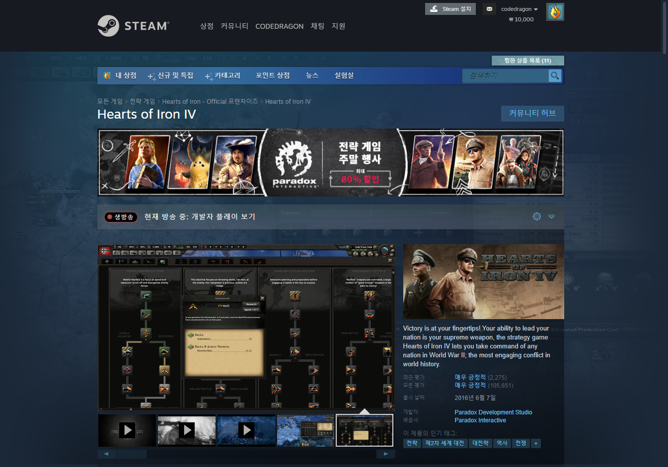 "Hearts of Iron IV 하츠 오브 아이언 4" 게임 페이지