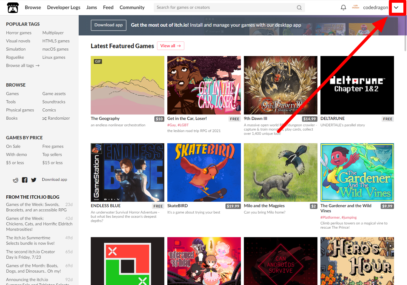 itch.io 잇치 닷 아이오 계정이 없다면 이전 영상 확인하시기 바랍니다.