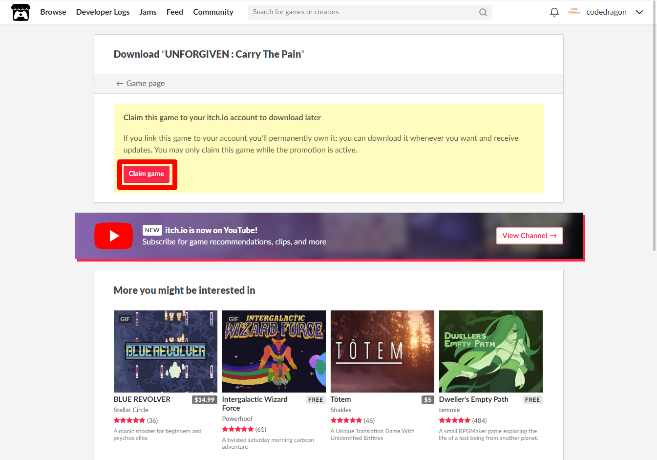 itch.io 잇치 닷 아이오 계정이 없다면 이전 영상 확인하시기 바랍니다.