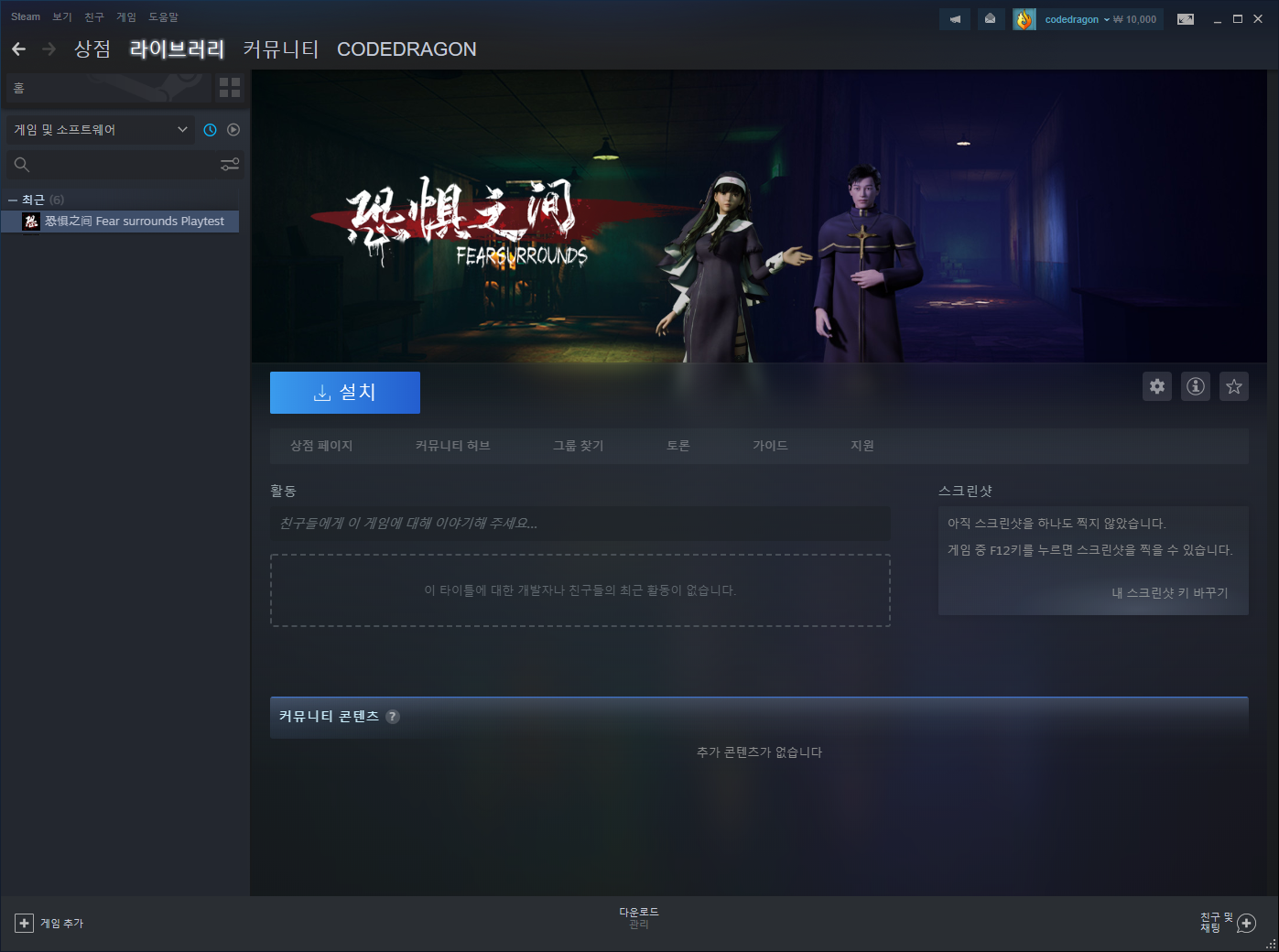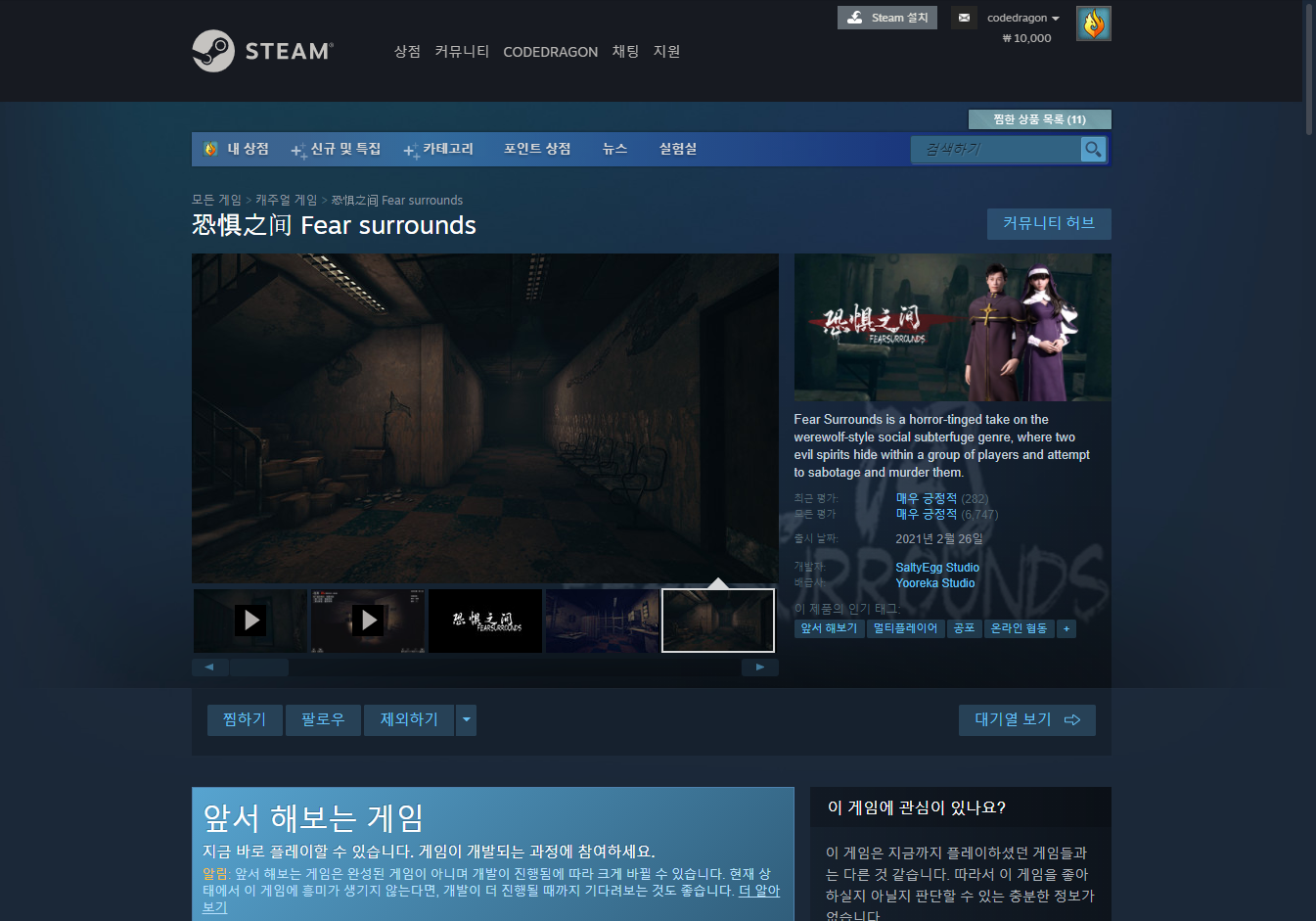 恐惧之间(공구지간) Fear surrounds 피어 서라운드 얼리엑세스 앞서 해보는 게임 등록하기 Early Acess - Steam 스팀키 라이브러리에 등록하기