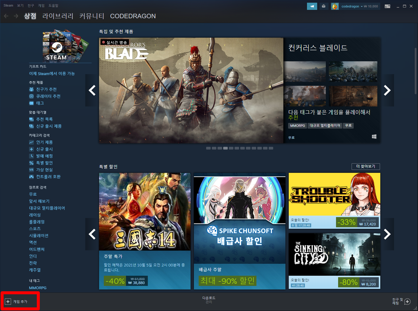 좌측하단의 [+ 게임추가] 클릭합니다.