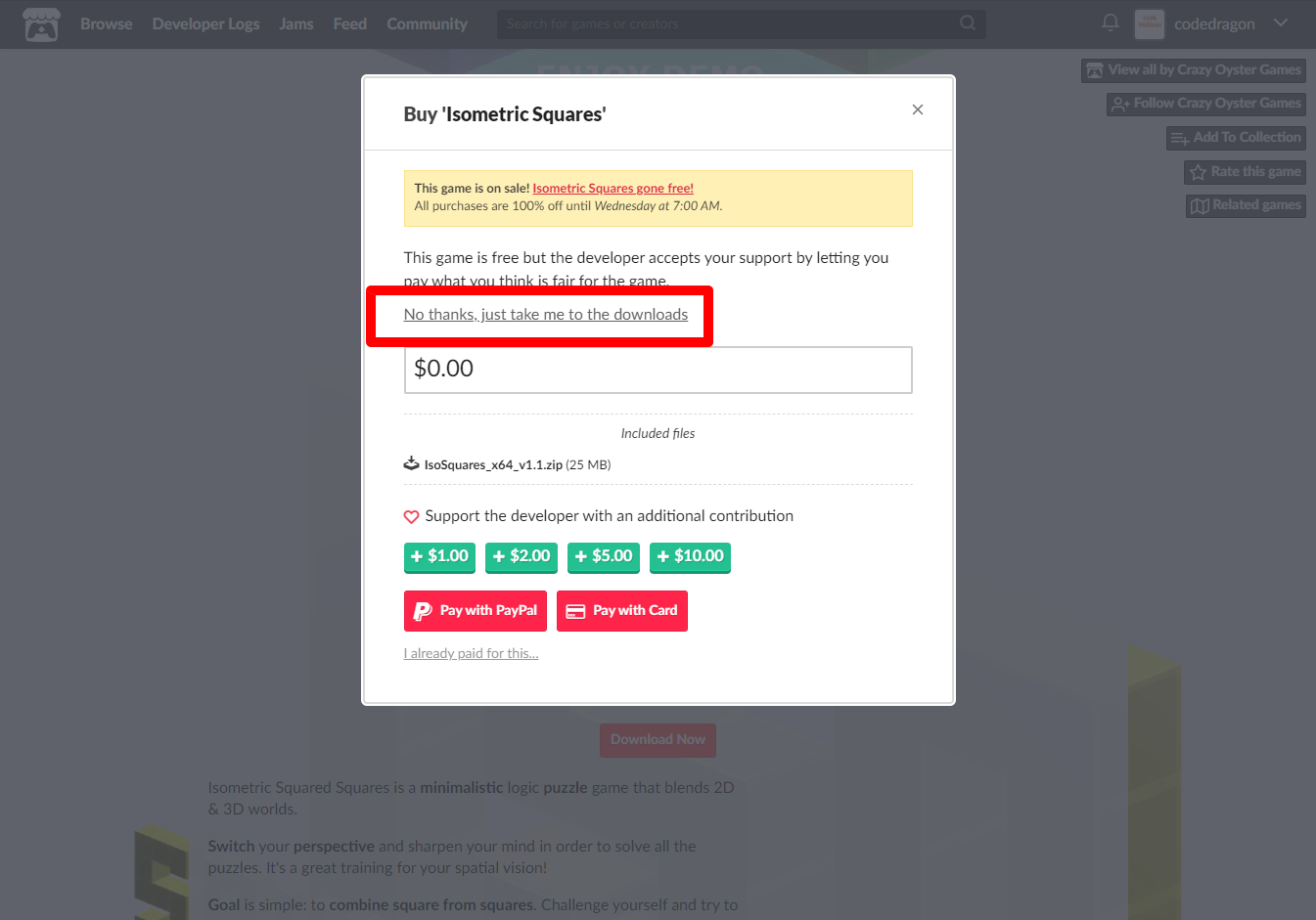 "Isometric Squares" 공식 페이지에 접속합니다.