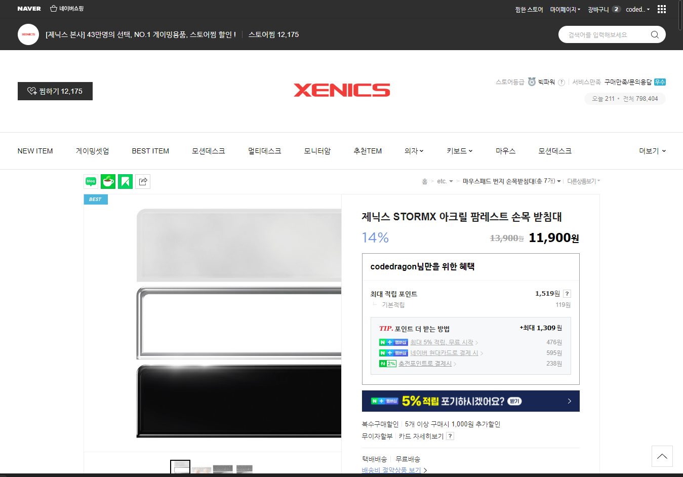 제닉스 STORMX 아크릴 팜레스트 손목 받침대 XENICS ACRYLIC PALMREST