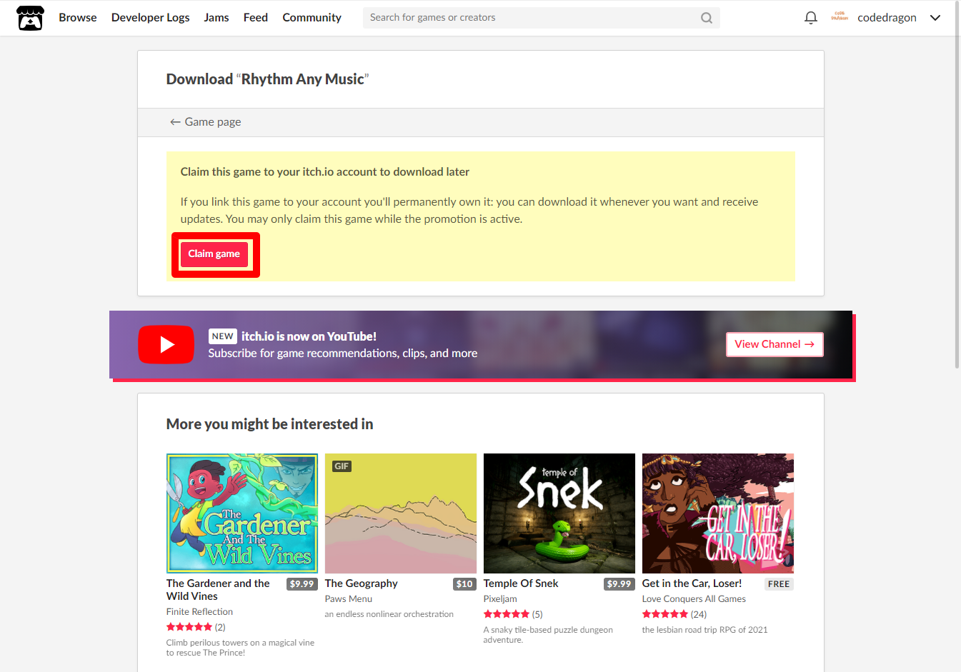 itch.io 잇치 닷 아이오 계정이 없다면 이전 영상 확인하시기 바랍니다.