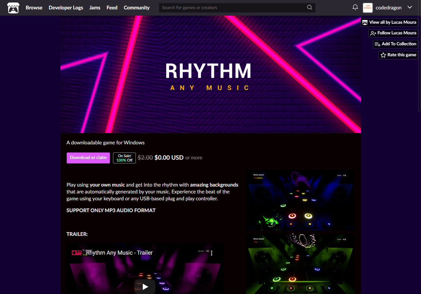 ₩2,356 -> ₩0 Rhythm Any Music 리듬 애니 뮤직 무료로 받기 영구소장 - itch.io 잇치 닷 아이오 한시적 무료 소장하기