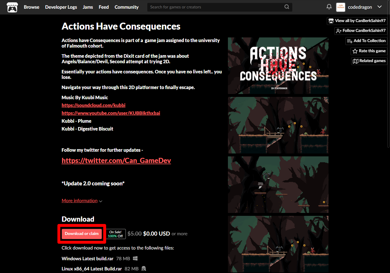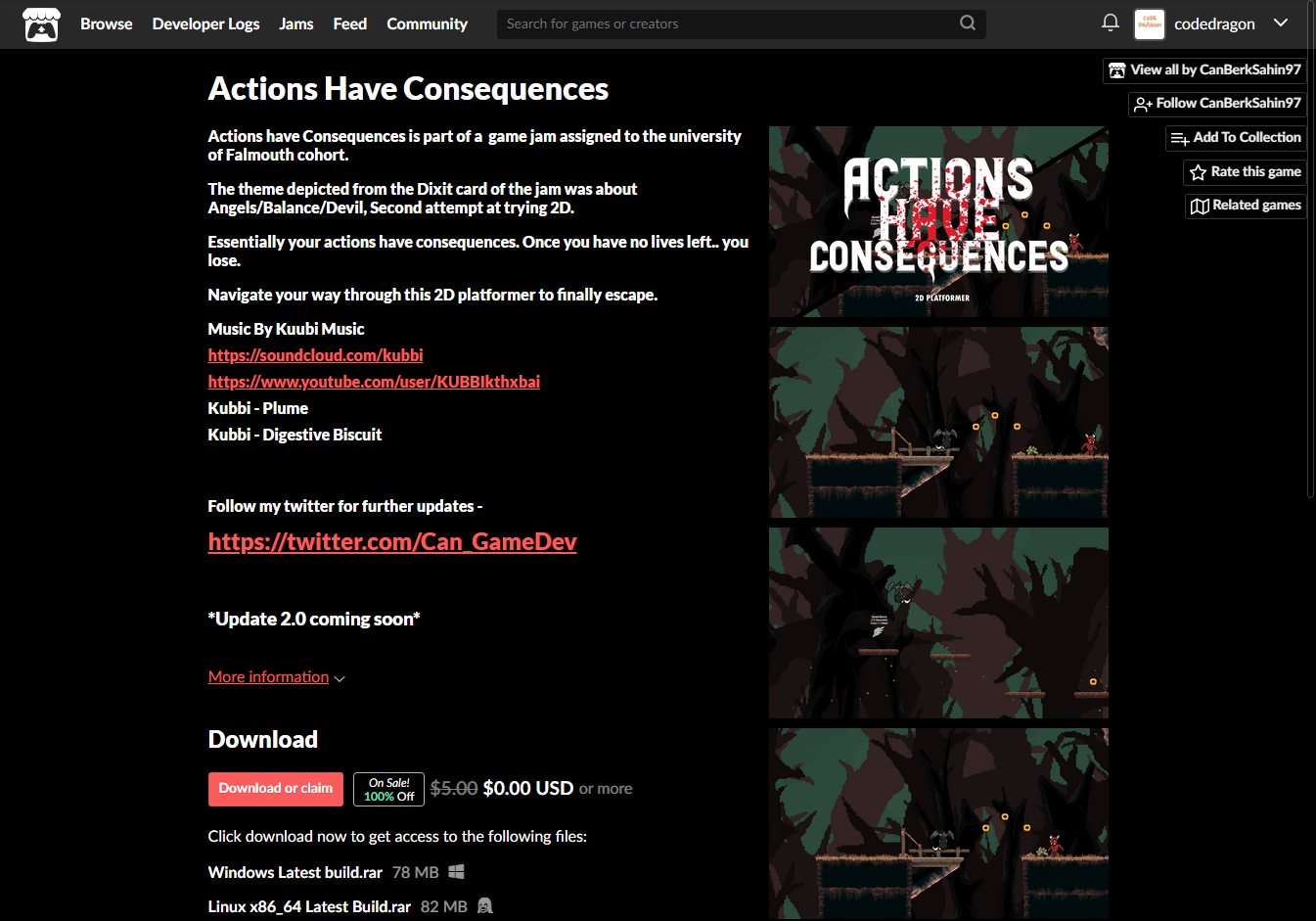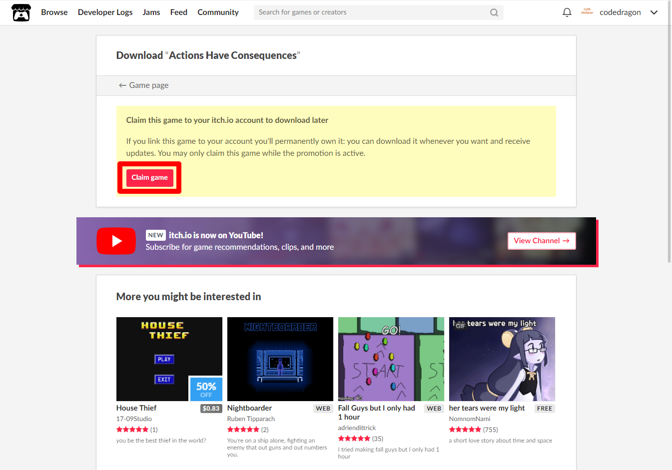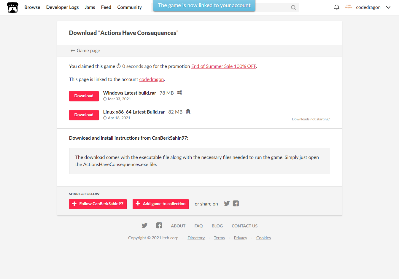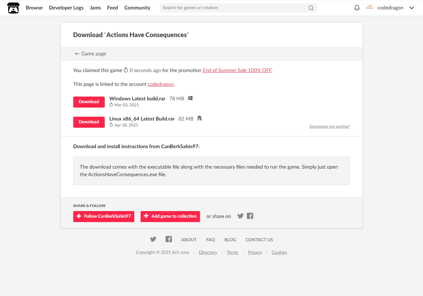 - "Actions Have Consequences" 게임 페이지