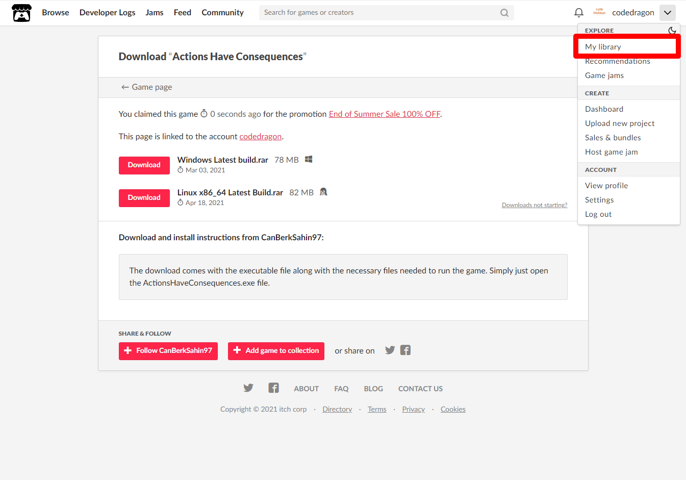 itch.io 잇치 닷 아이오 계정이 없다면 이전 영상 확인하시기 바랍니다.