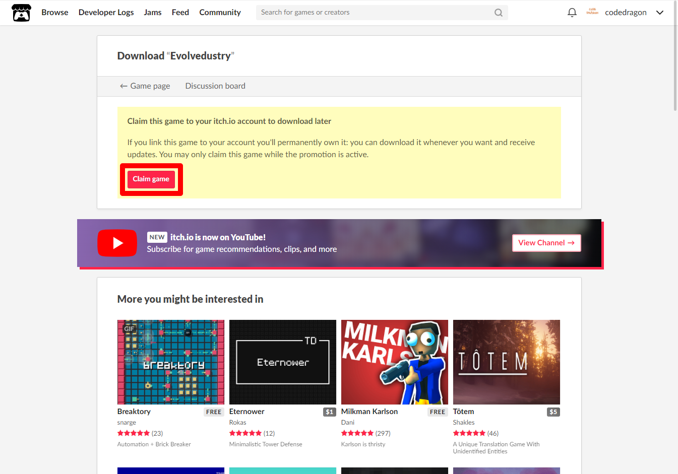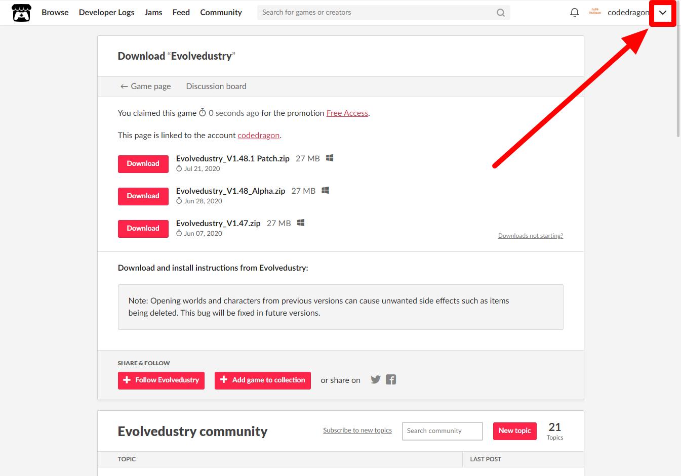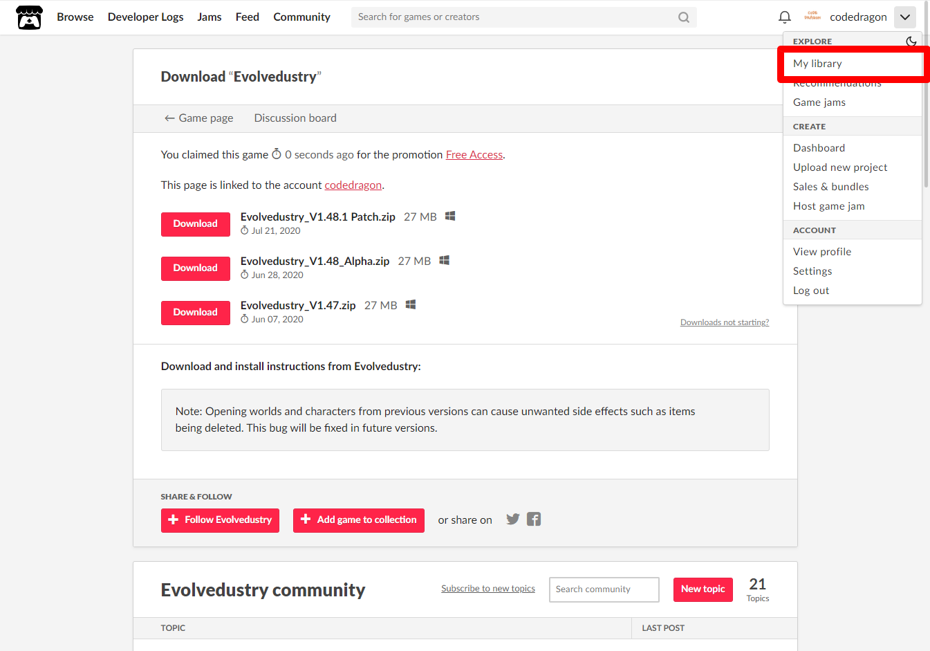 itch.io 잇치 닷 아이오 계정이 없다면 이전 영상 확인하시기 바랍니다.