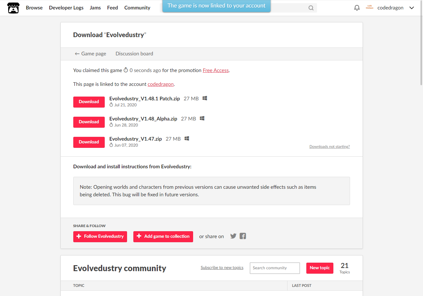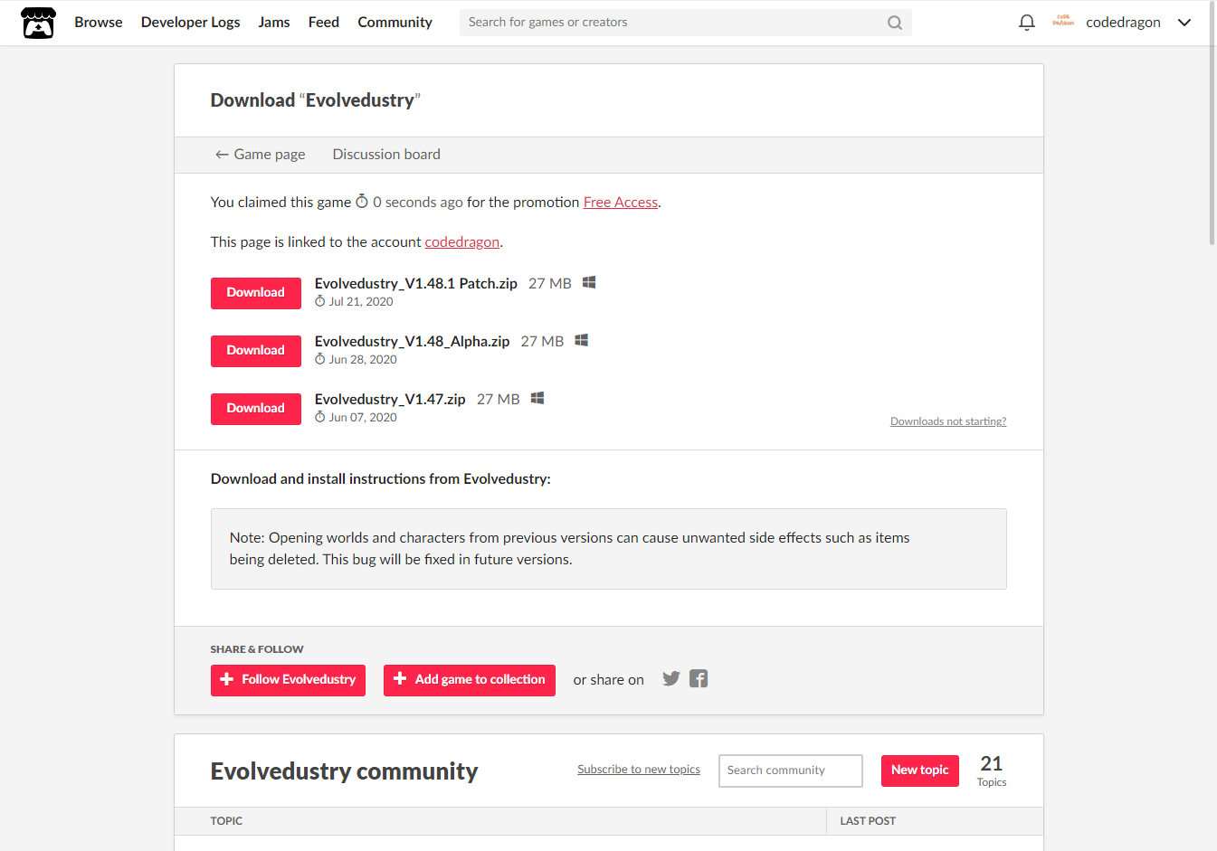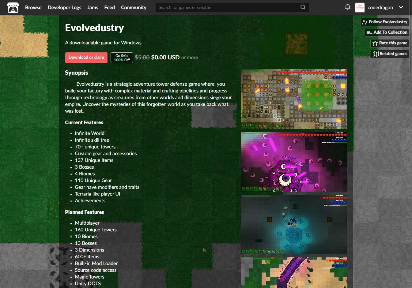 ₩5,935 -> ₩0 Evolvedustry 이볼브더스트리 무료로 받기 영구소장 (재배포) - itch.io 잇치 닷 아이오 한시적 무료 소장하기