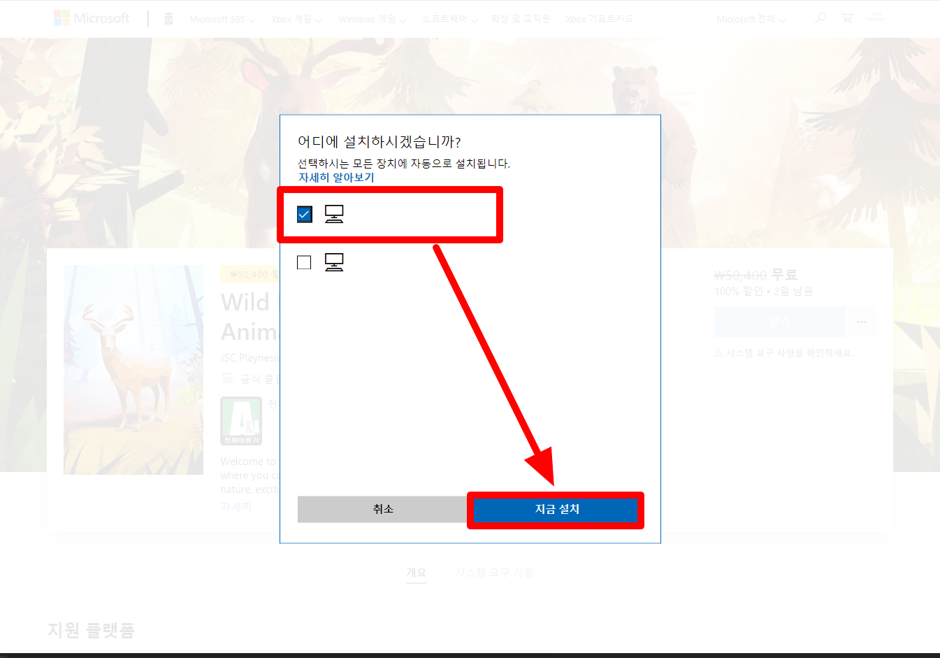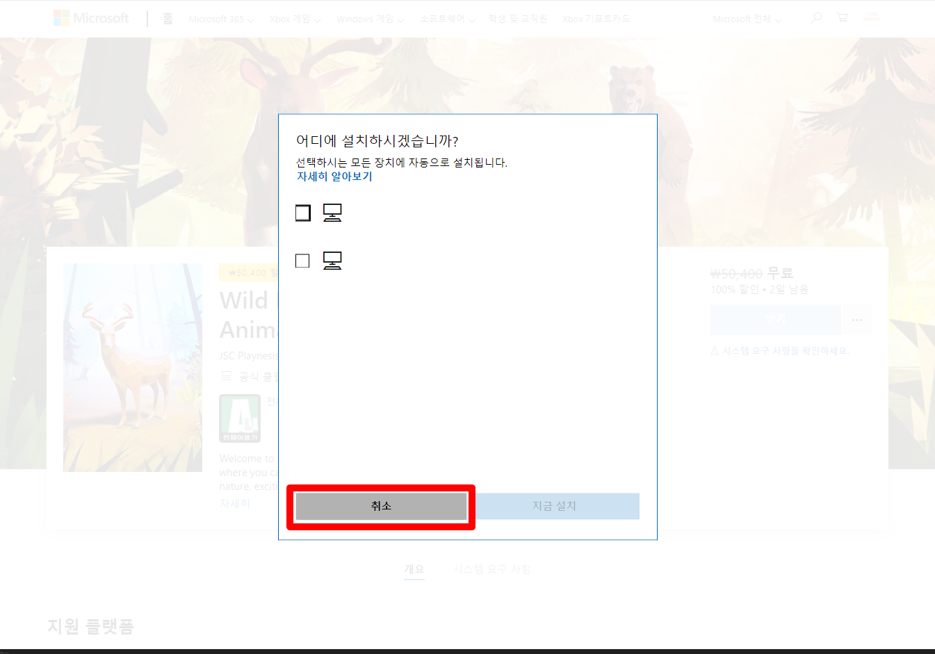 [취소] 버튼을 클릭하면 설치없이 게임 페이지로 이동됩니다.