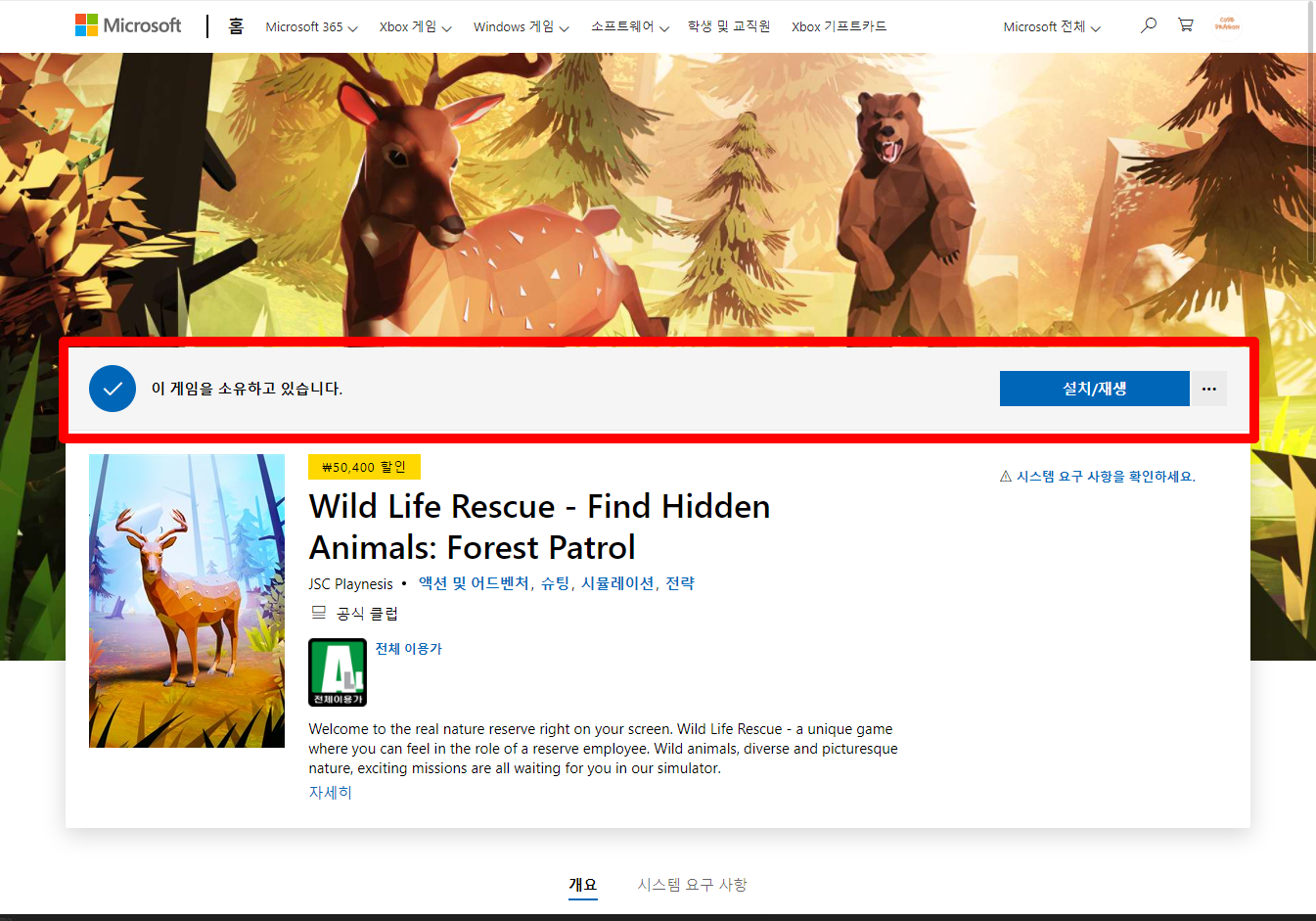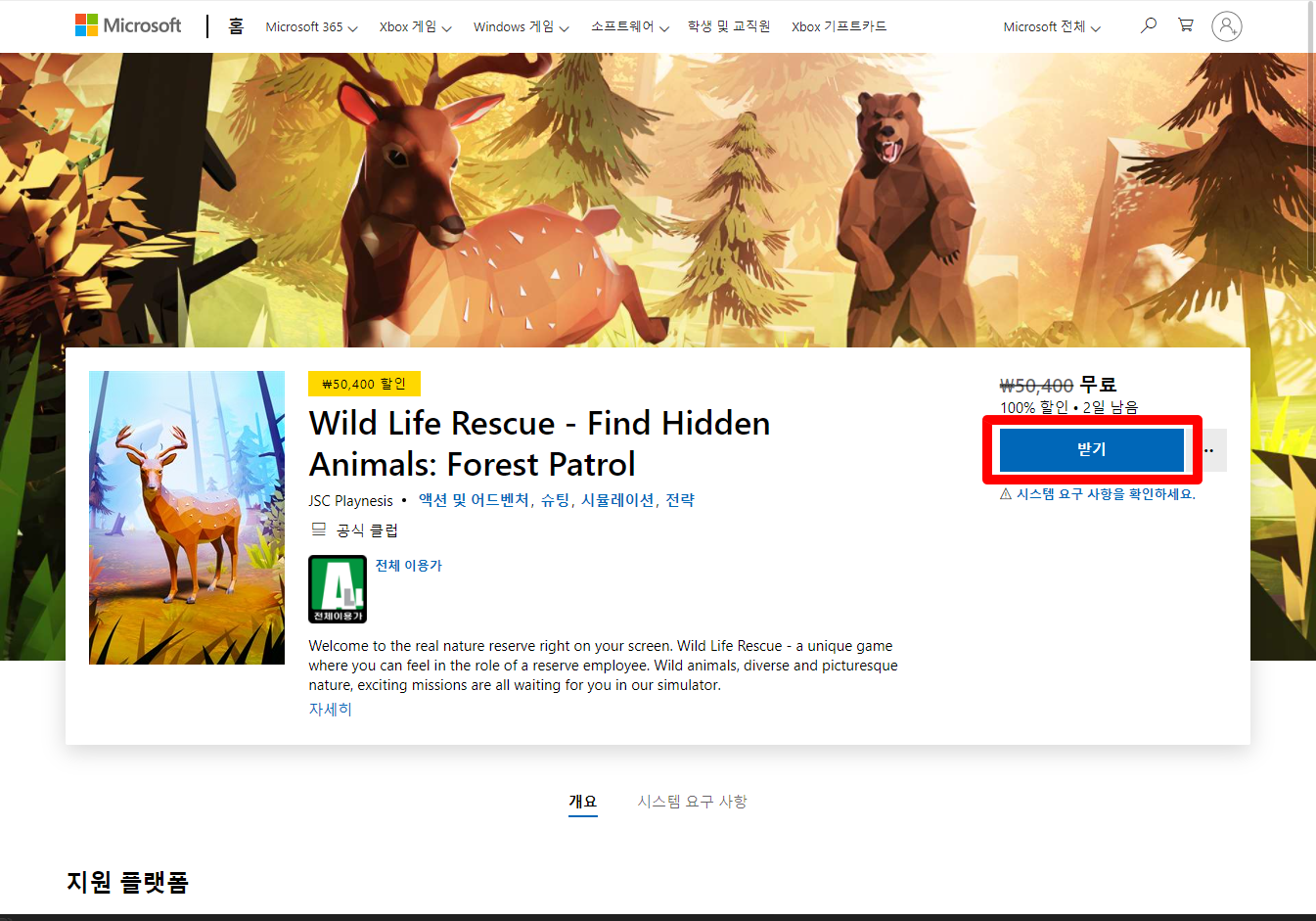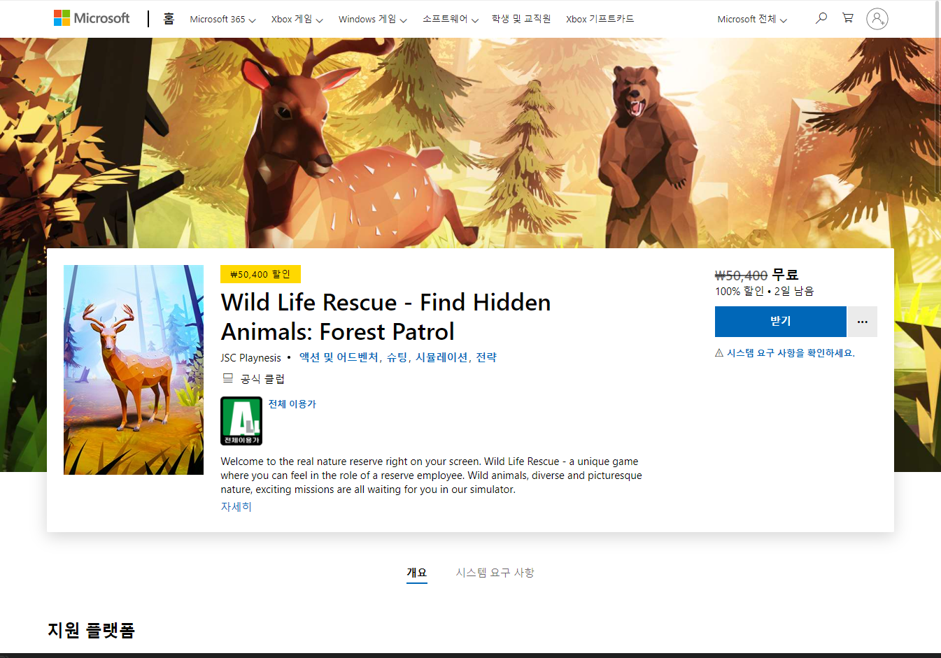 ₩50,400 -> ₩0(FREE) Wild Life Rescue 와일드 라이프 레스큐 - MS 무료게임 받기 FREE GAME