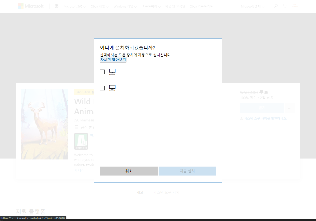 [취소] 버튼을 클릭하면 설치없이 게임 페이지로 이동됩니다.