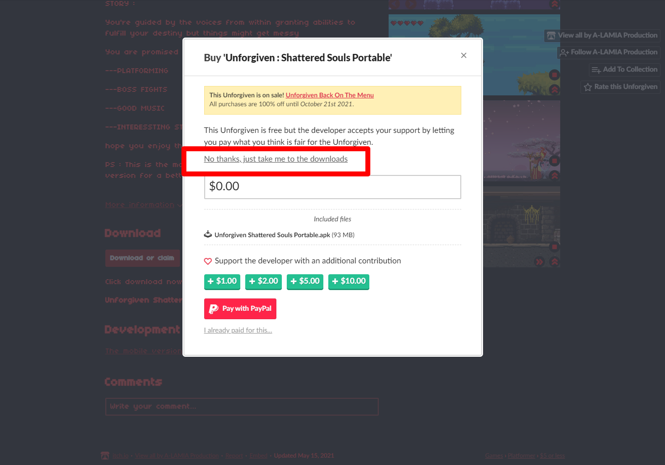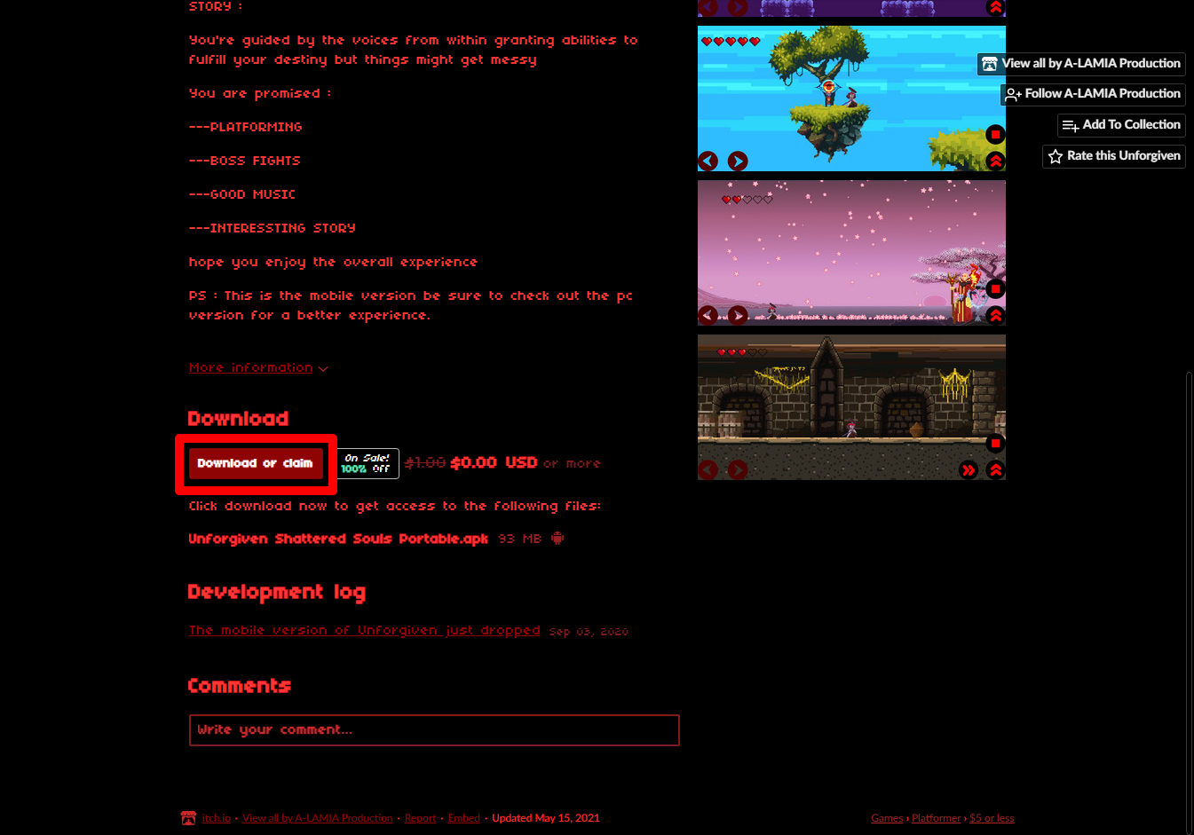 ₩1,187 -> ₩0 Unforgiven : Shattered Souls Portable 언퍼기번: 쉐털드 소울 포터블 무료로 받기 영구소장 - itch.io 잇치 닷 아이오 한시적 무료 소장하기