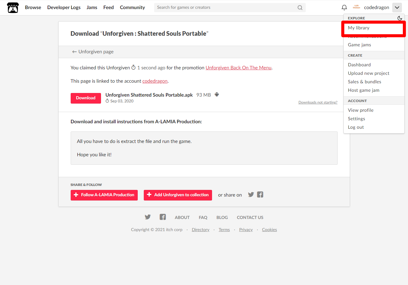 itch.io 잇치 닷 아이오 계정이 없다면 이전 영상 확인하시기 바랍니다.