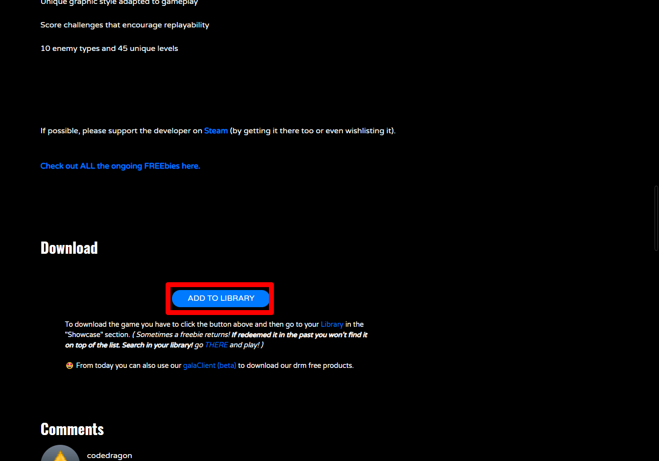 페이지를 내려 [ADD TO LIBRARY]를 클릭하면 됩니다.
