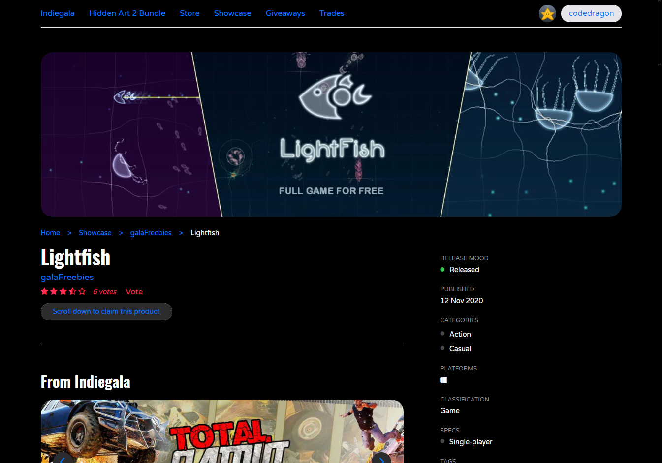₩5,500 -> ₩ 0 Lightfish 라이트피시 무료 Free - 인디갈라 indiegala 무료 소장 기회 기간한정 indiegala FREE GAME, Limited time
