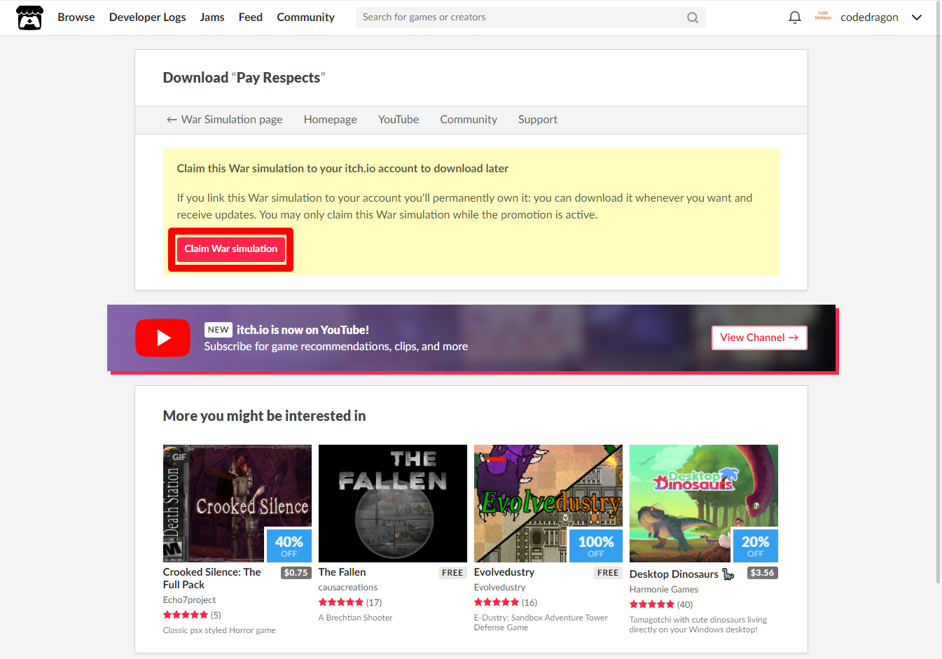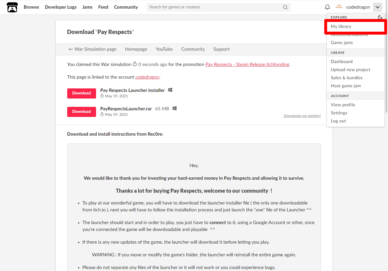 itch.io 잇치 닷 아이오 계정이 없다면 이전 영상 확인하시기 바랍니다.