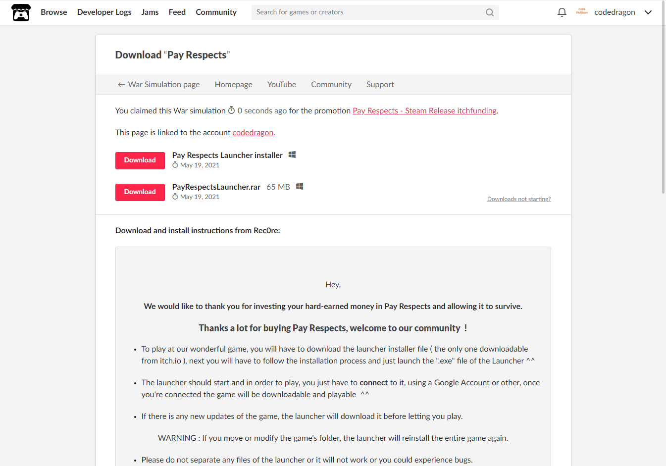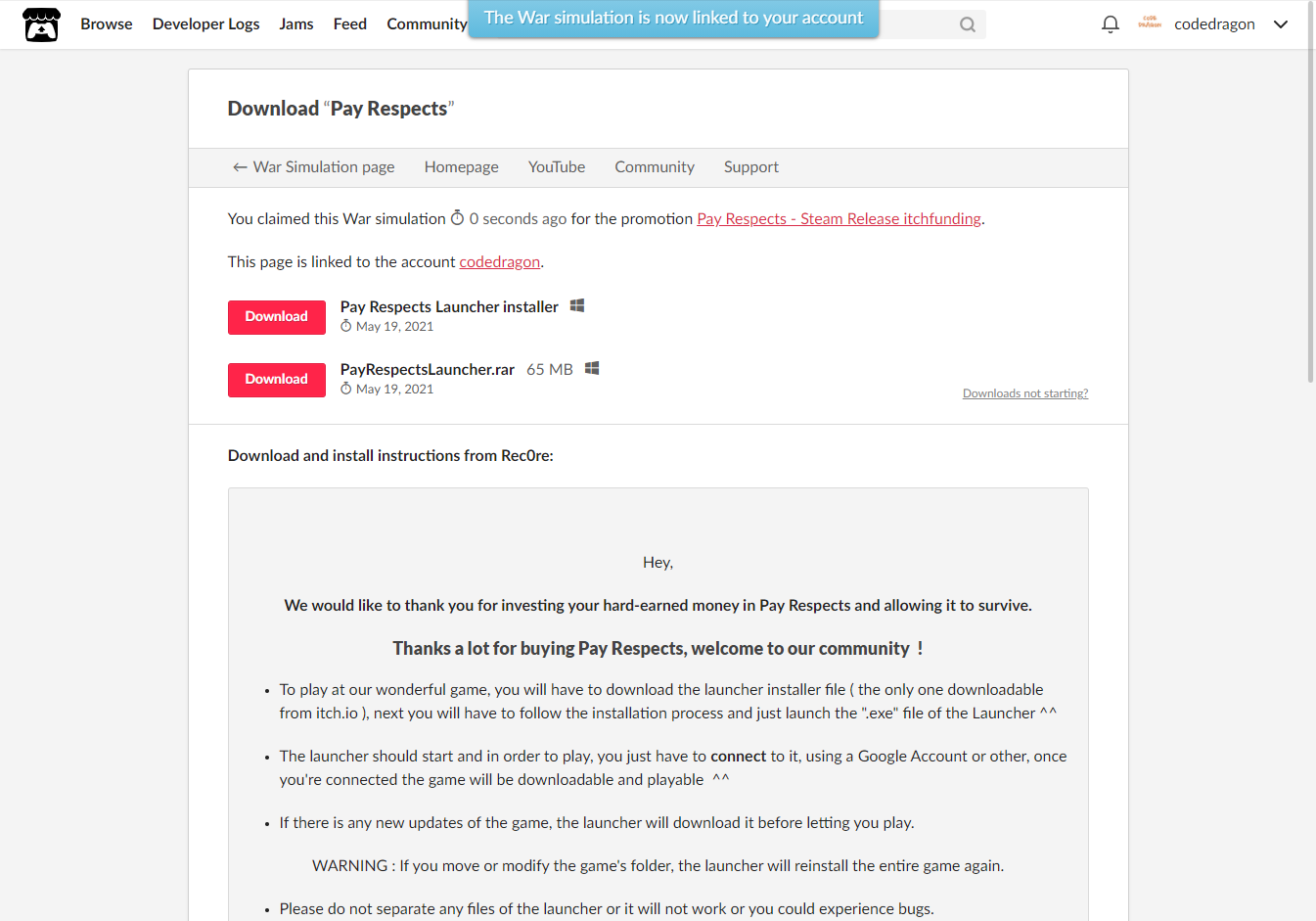 ₩2,374 -> ₩0 Pay Respects 페이 리스텍트 무료로 받기 영구소장 - itch.io 잇치 닷 아이오 한시적 무료 소장하기