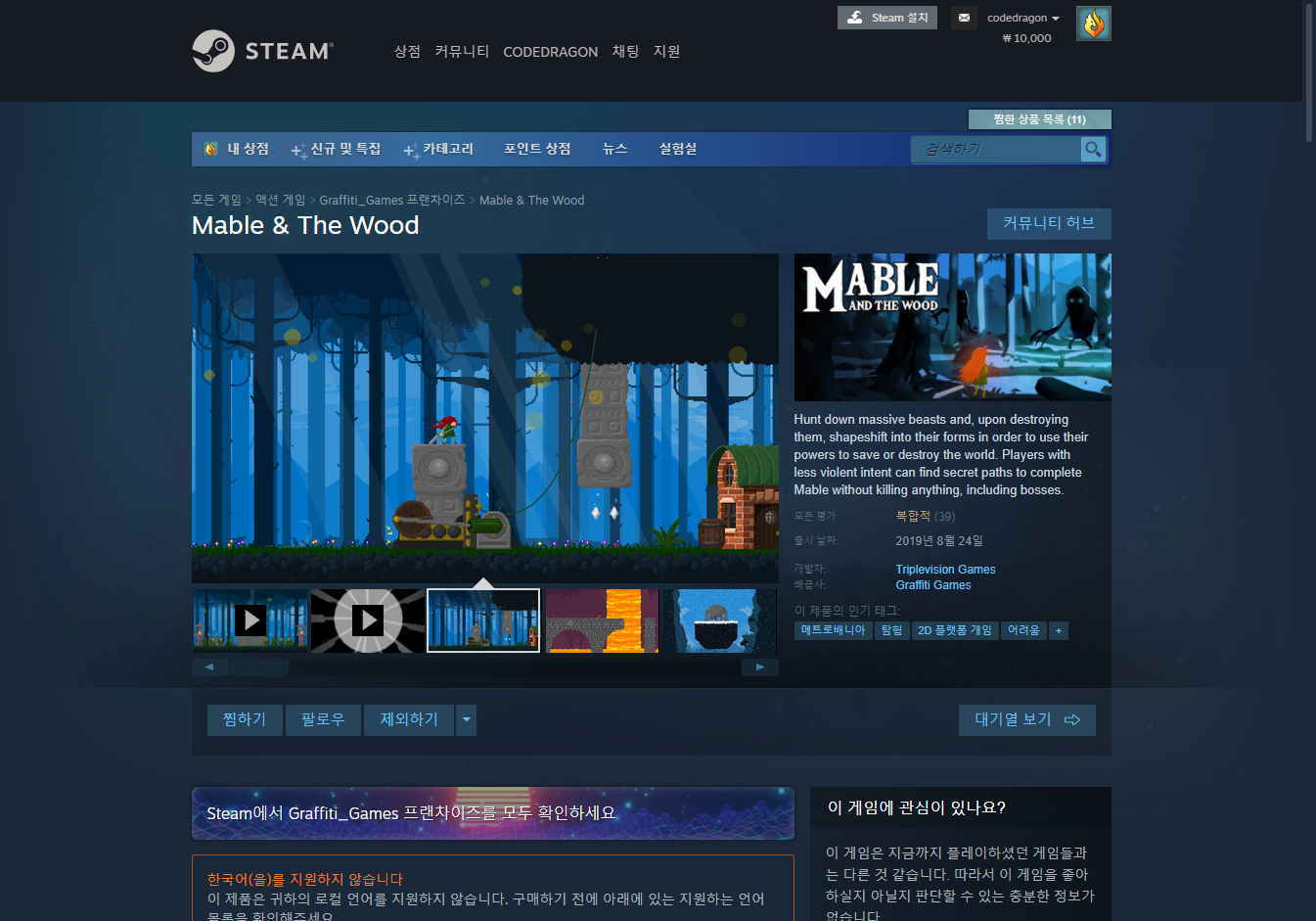Mable & The Wood 메이블 & 더 우드 - Steam 스팀키 라이브러리에 등록하기