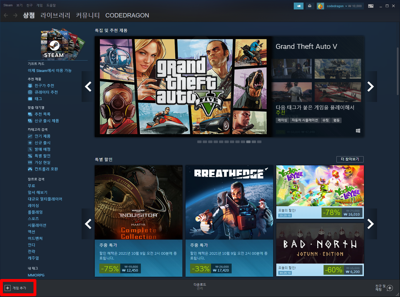 좌측하단의 [+ 게임추가] 클릭합니다.