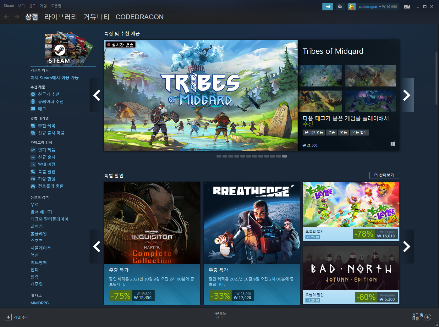 스팀 런처에서 상단에 있는 [라이브러리] 메뉴를 클릭하면 게임 항목을 확인할 수 있습니다.