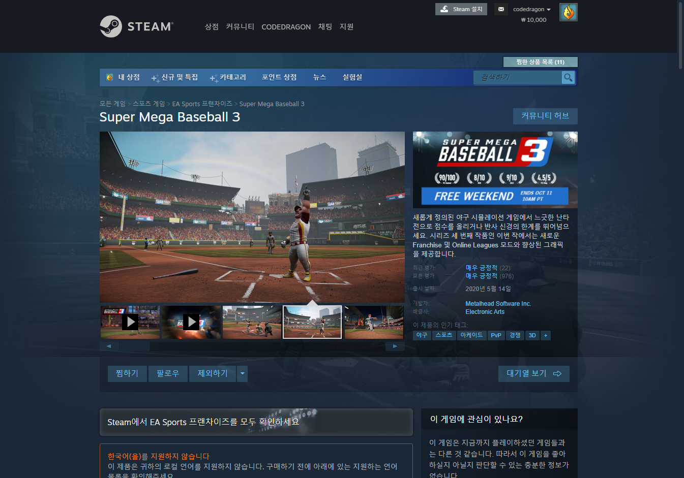 "Super Mega Baseball 3"게임페이지입니다.