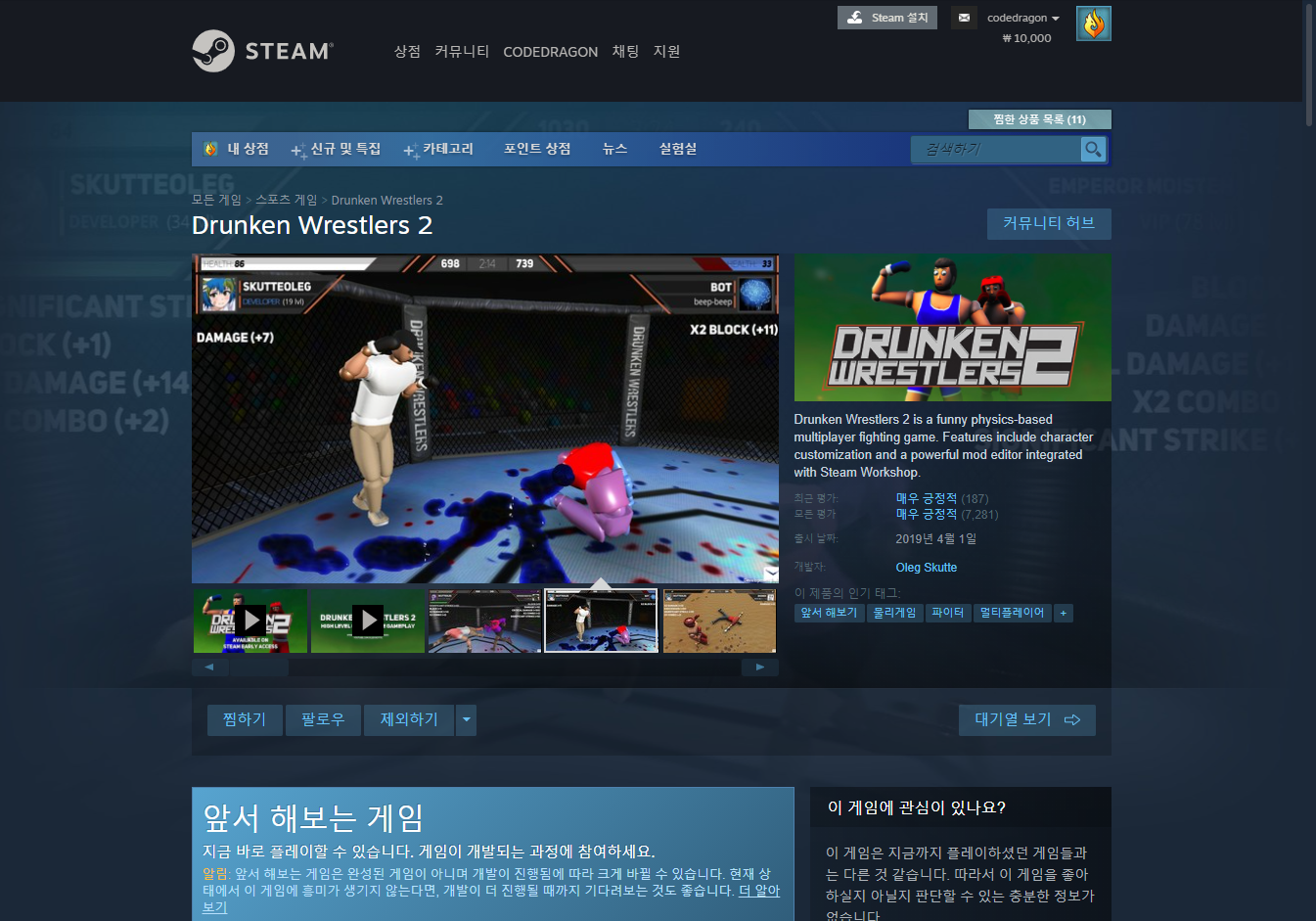 "Drunken Wrestlers 2" 게임 페이지 - Steam 스팀