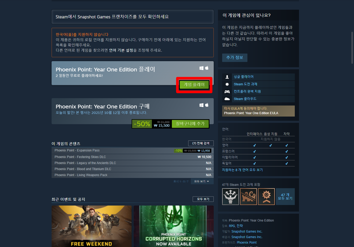 Phoenix Point: Year One Edition 피닉스 포인트: Year One 에디션 - Steam 스팀 금주 무료 플레이 Play for Free weekend on Steam 스팀