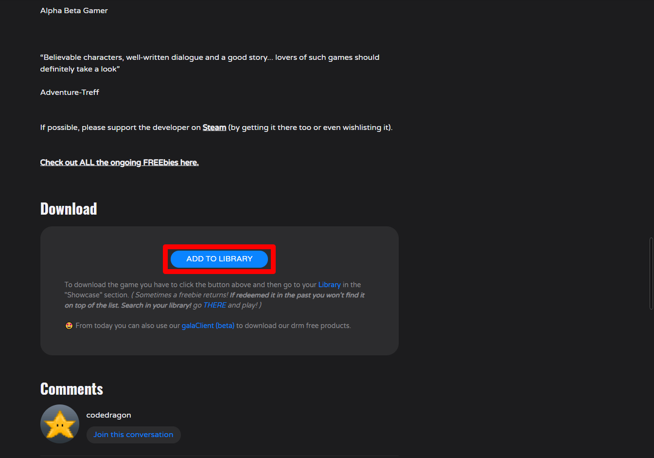 페이지를 내려 [ADD TO LIBRARY]를 클릭합니다.