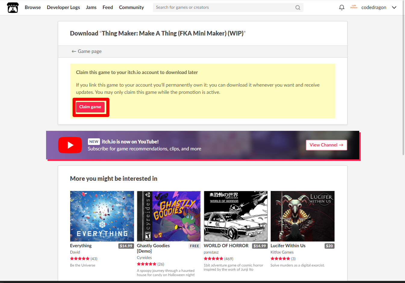 itch.io 잇치 닷 아이오 계정이 없다면 이전 영상 확인하시기 바랍니다.