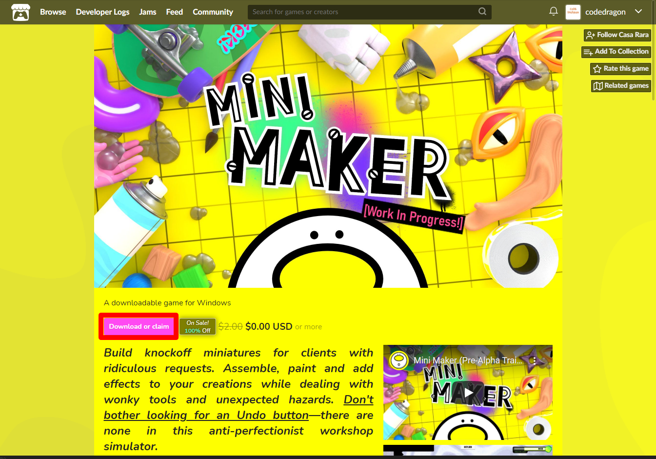 ₩2,392 -> ₩0(Free) 미니 메이커 Thing Maker: Make A Thing (FKA Mini Maker) (WIP) 무료로 받기 영구소장 - itch.io 잇치 닷 아이오 한시적 무료 소장하기