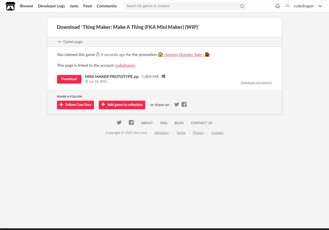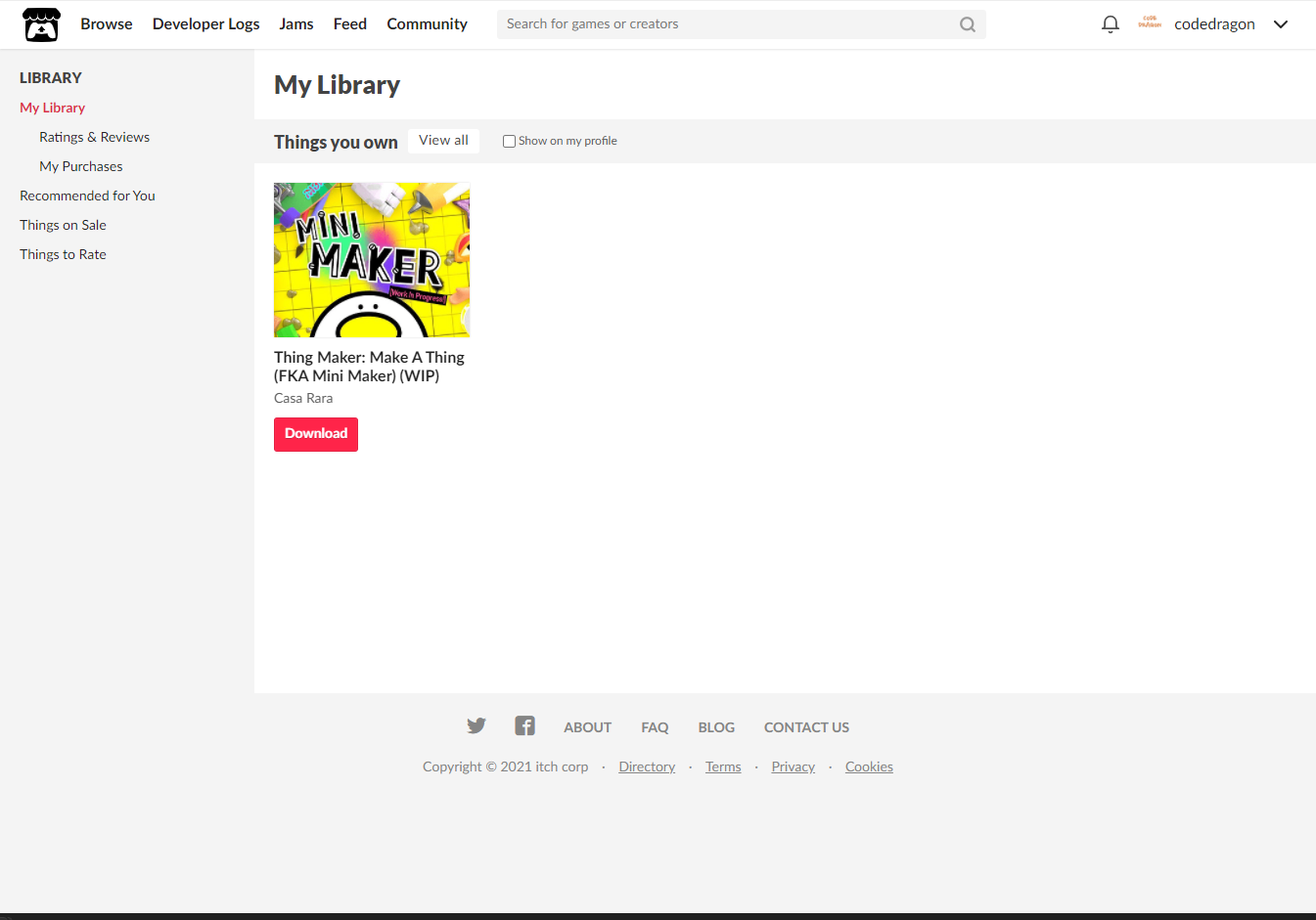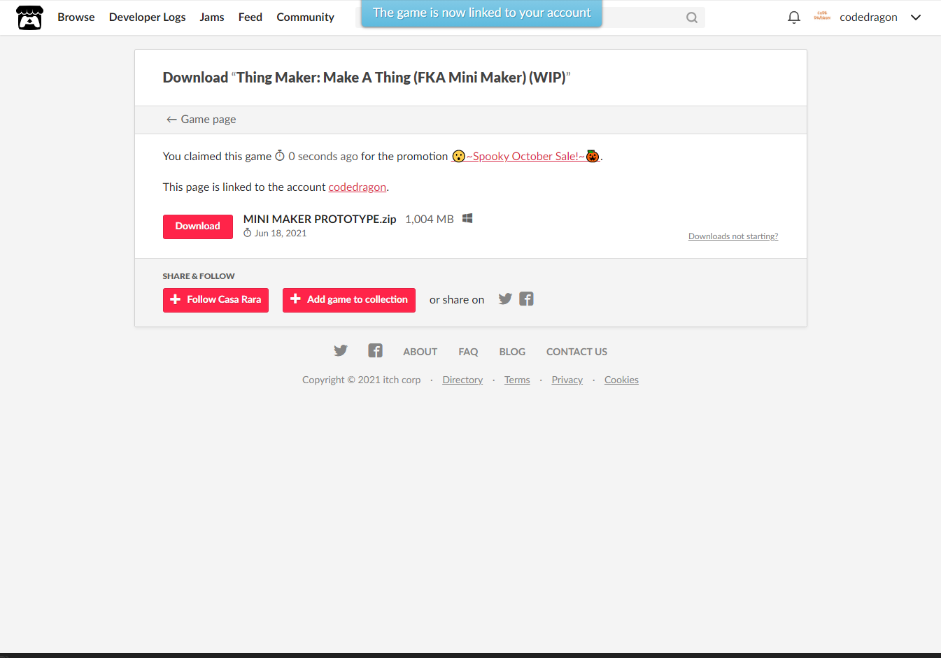 "Thing Maker: Make A Thing (FKA Mini Maker) (WIP)" 공식 페이지에 접속합니다.