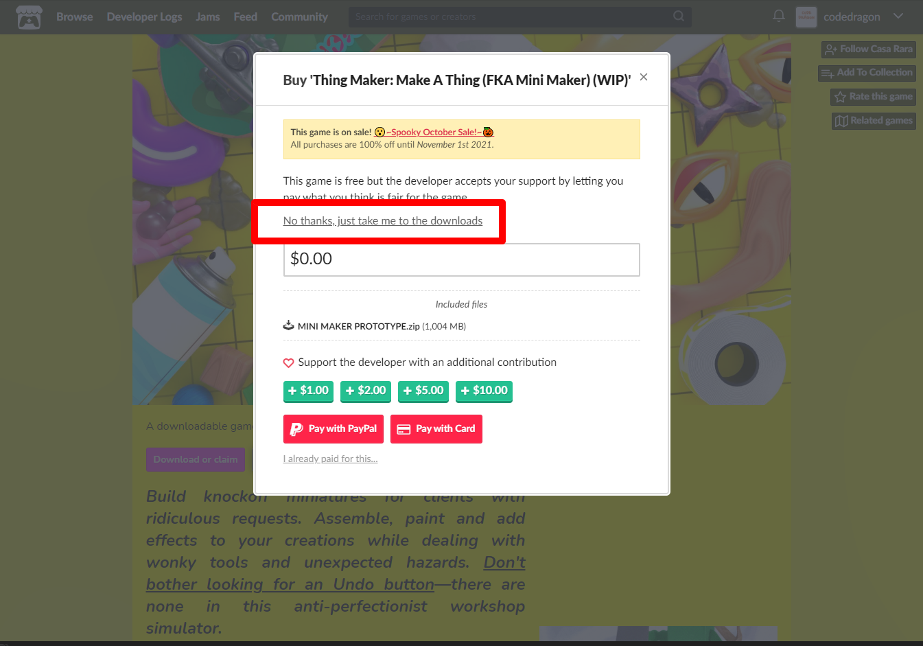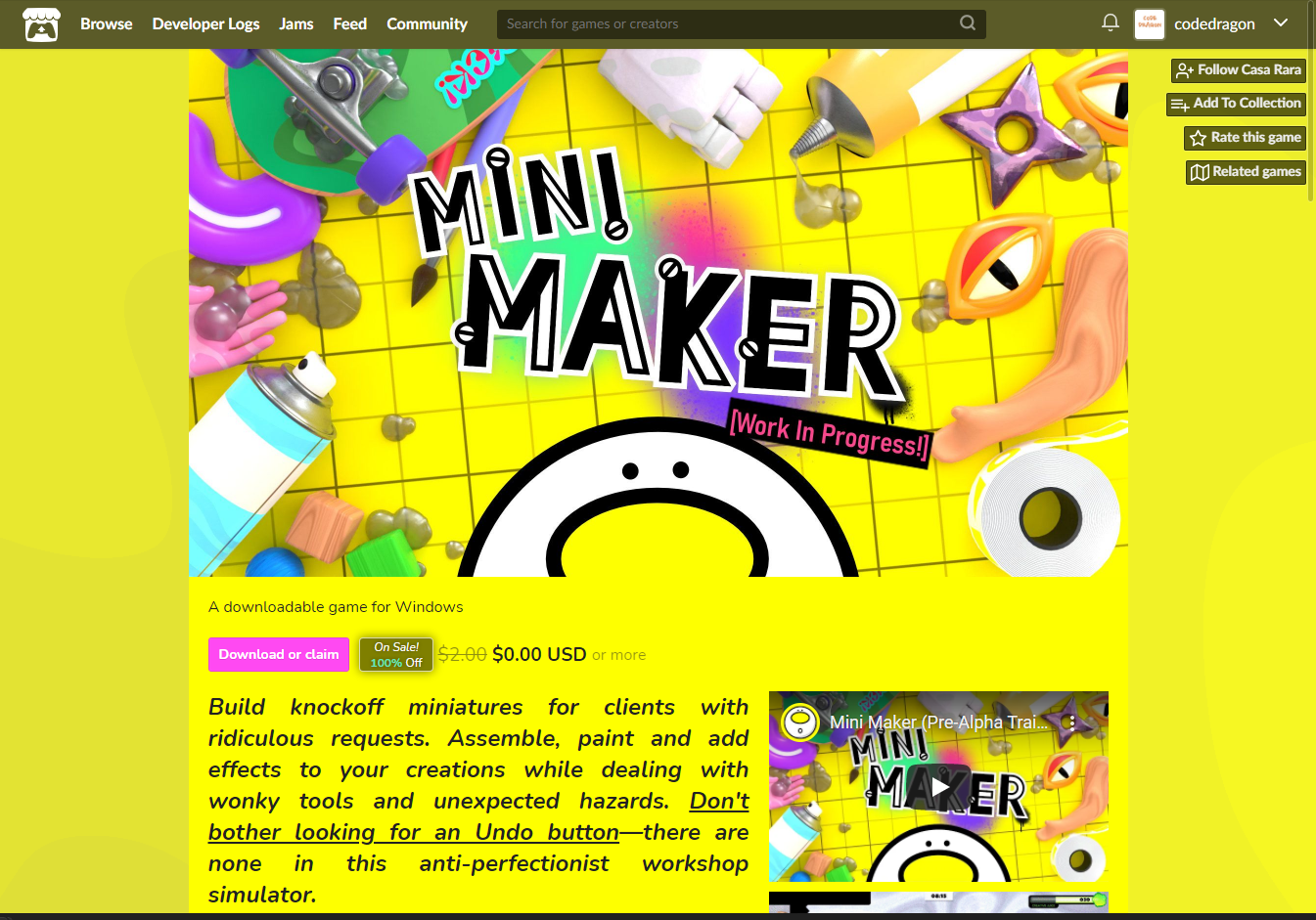 ₩2,392 -> ₩0(Free) 미니 메이커 Thing Maker: Make A Thing (FKA Mini Maker) (WIP) 무료로 받기 영구소장 - itch.io 잇치 닷 아이오 한시적 무료 소장하기