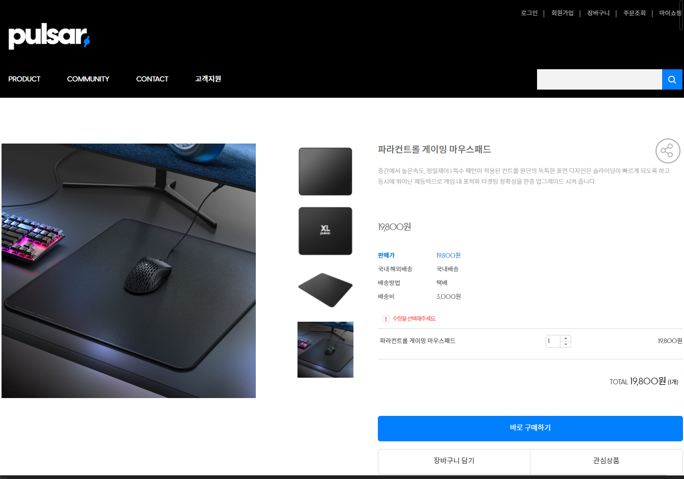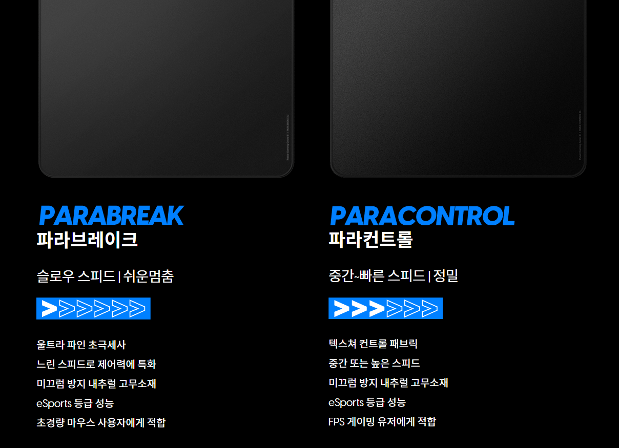 파라컨트롤 게이밍 마우스패드 제품 페이지
