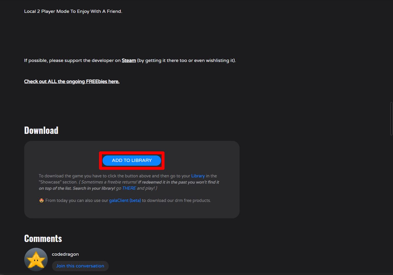페이지를 내려 [ADD TO LIBRARY]를 클릭합니다.