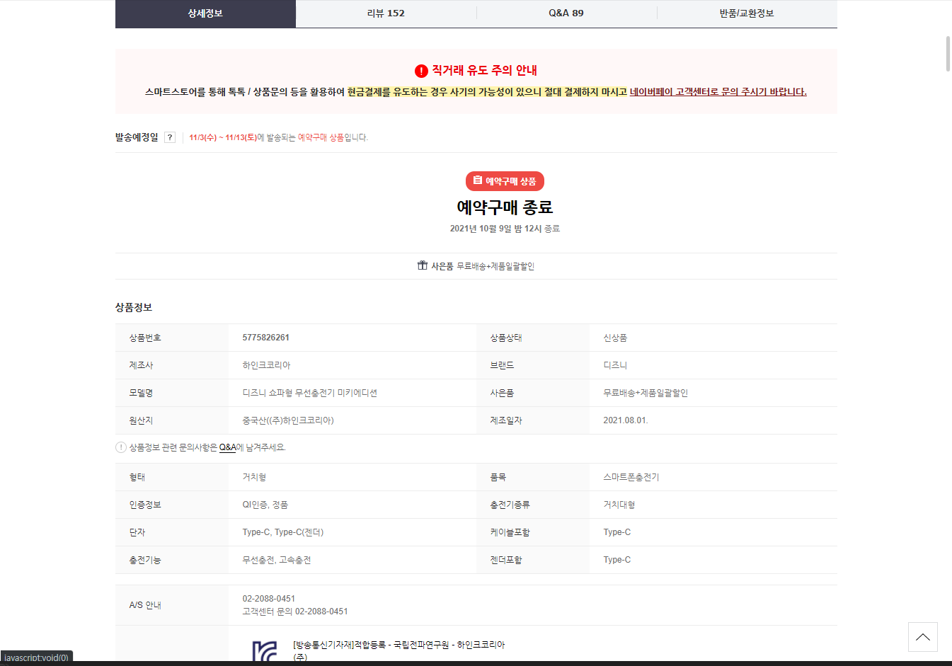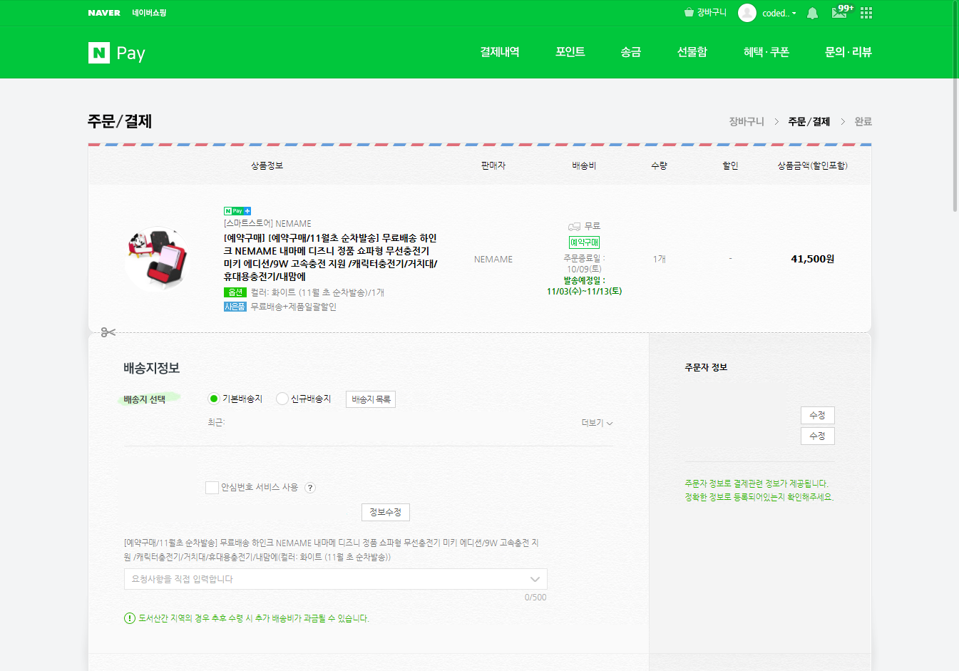 NEMAME 디즈니 정품 쇼파형 무선충전기 예약 구매 진행 상태