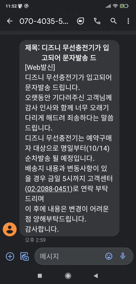 예약 구매 상황에 대해 지속적으로 알림 메시지가 발송됩니다.