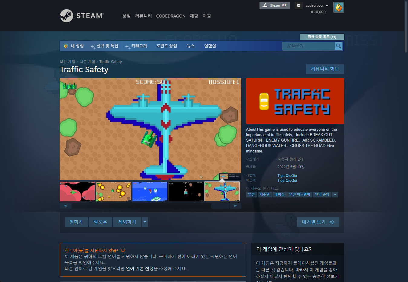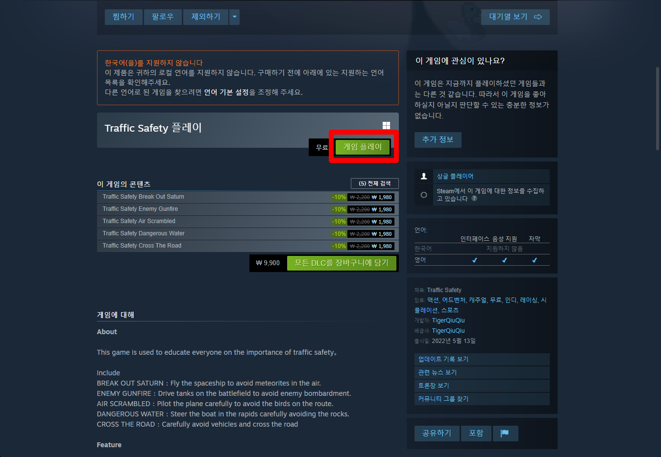 "Traffic Safety" 페이지를 내려 [게임 플레이]를 클릭하면 됩니다.