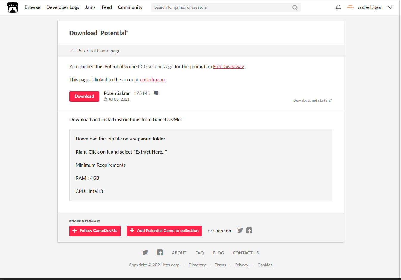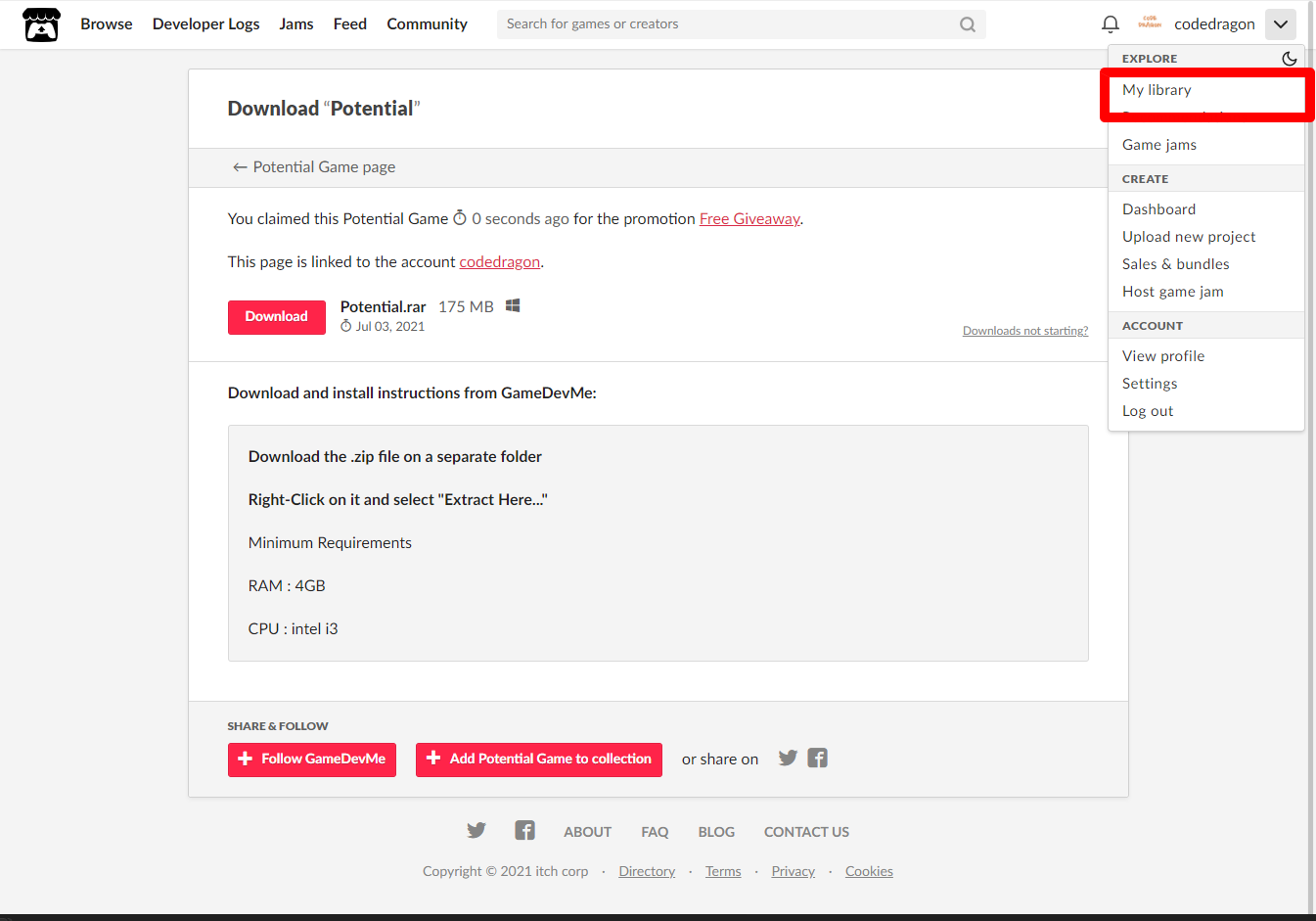 itch.io 잇치 닷 아이오 계정이 없다면 이전 영상 확인하시기 바랍니다.