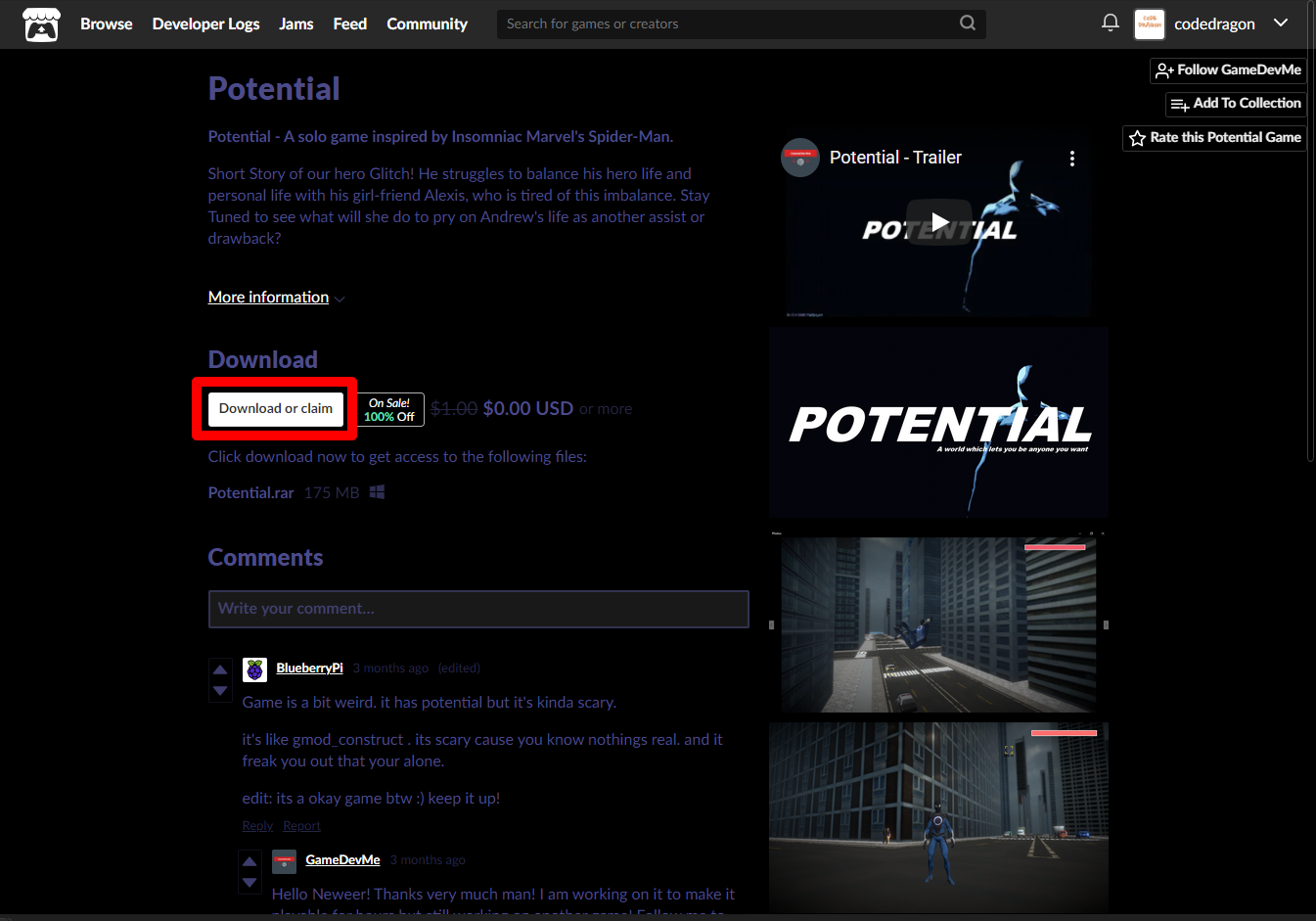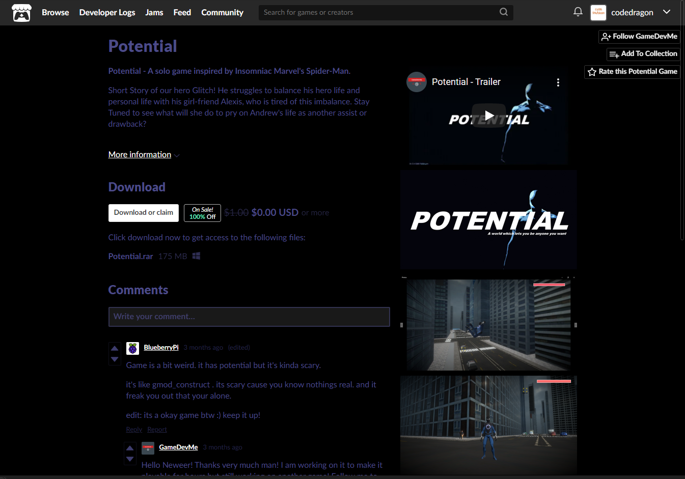 "Potential" 게임 페이지