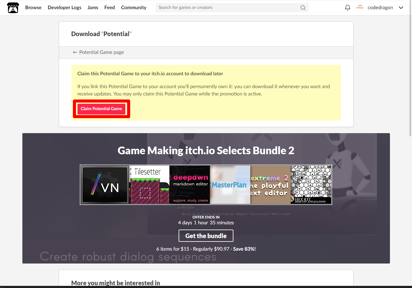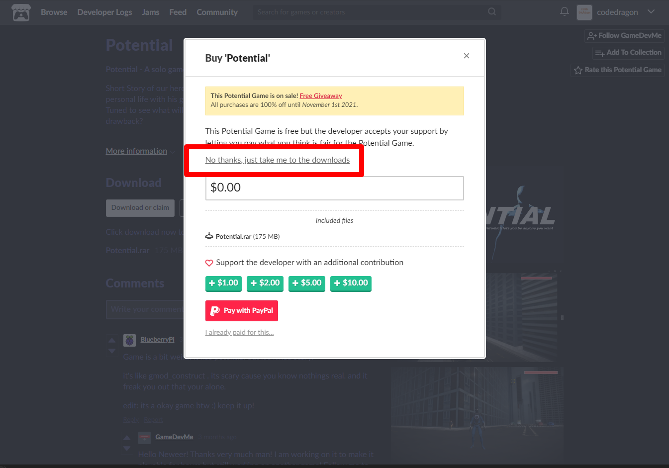 ₩1,183 -> ₩0(Free) Potential 무료로 받기 영구소장 - itch.io 잇치 닷 아이오 한시적 무료 소장하기 (재등록)