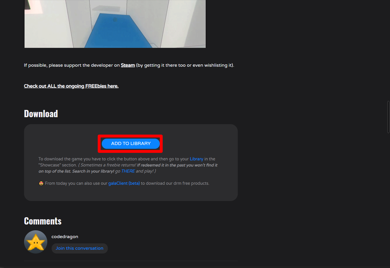 페이지를 내려 [ADD TO LIBRARY]를 클릭합니다.