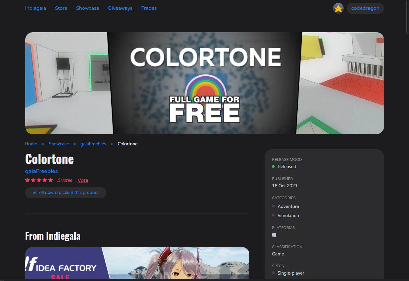 ₩4,400 -> ₩ 0(Free) Colortone 컬러톤 무료 - 인디갈라 indiegala 무료 소장 기회 기간한정 indiegala FREE GAME, Limited time