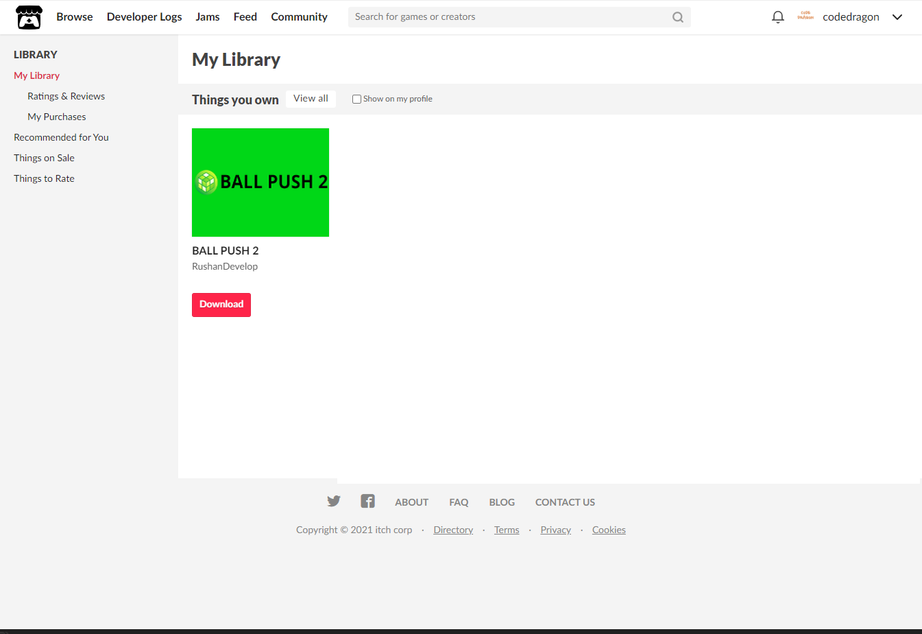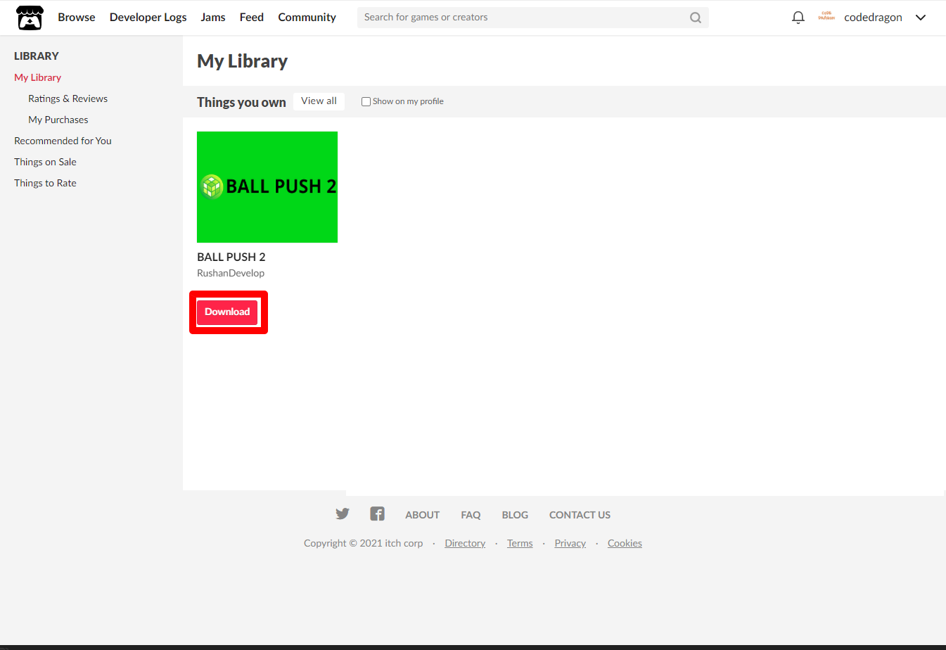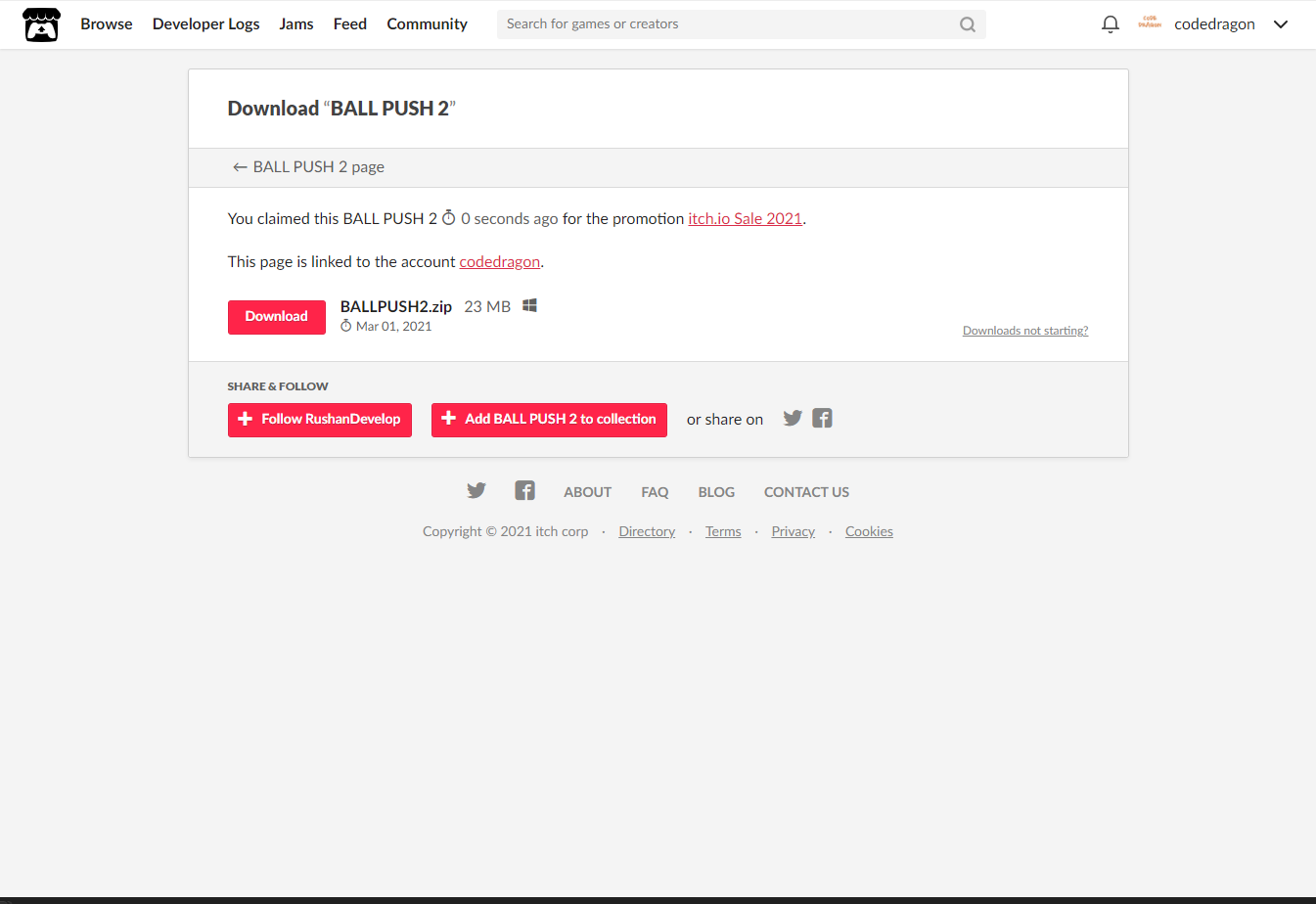 [Claim BALL PUSH 2]을 클릭하면 나의 게임 라이브러리에 추가되고