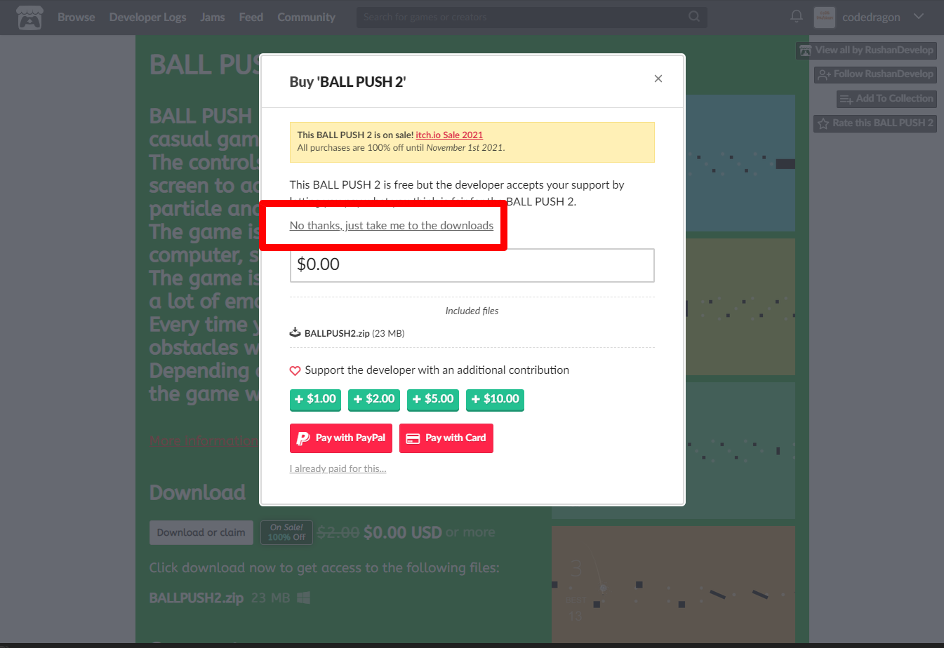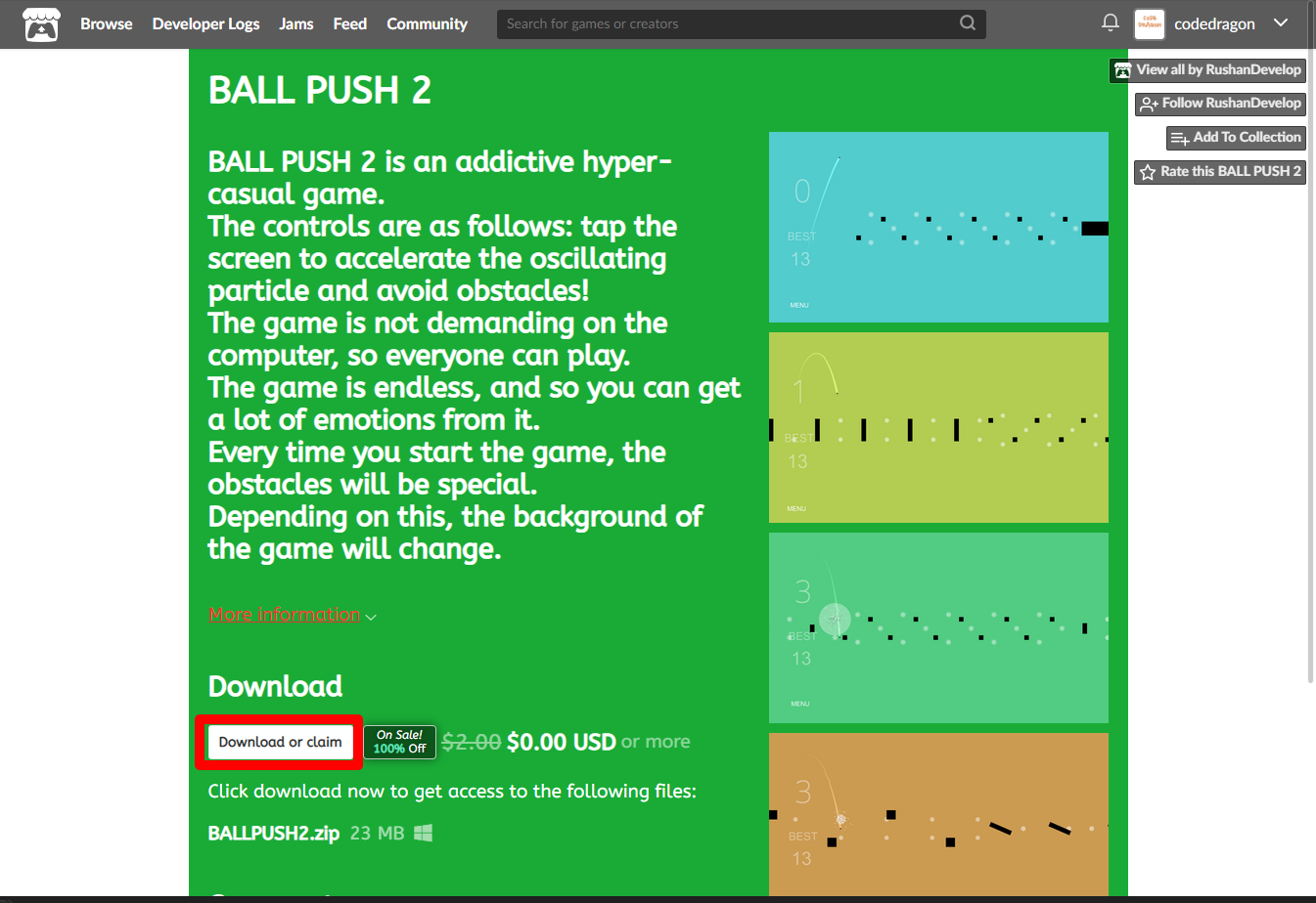 [Claim BALL PUSH 2]을 클릭하면 나의 게임 라이브러리에 추가되고