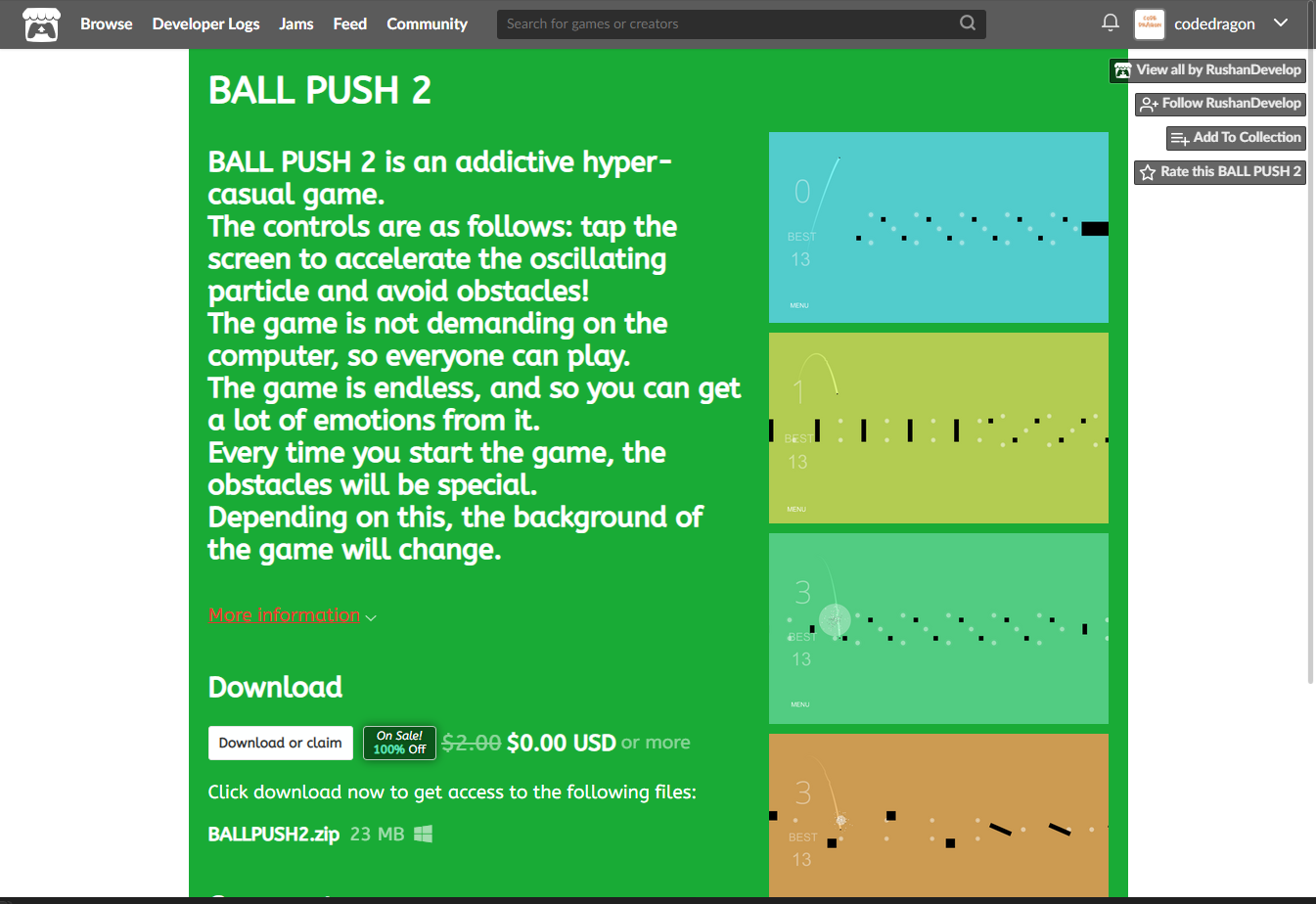 ₩2,357 -> ₩0(Free) BALL PUSH 2 볼 푸쉬 2 무료로 받기 영구소장 - itch.io 잇치 닷 아이오 한시적 무료 소장하기