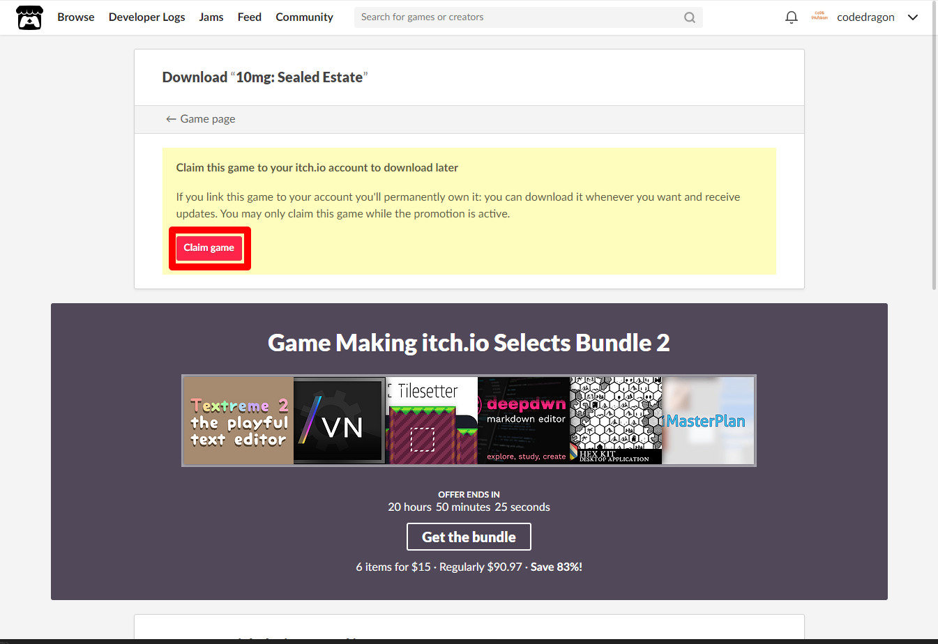 [Claim game]을 클릭하면 나의 게임 라이브러리에 추가되고